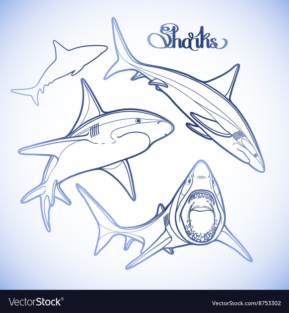 Много акул рисунок