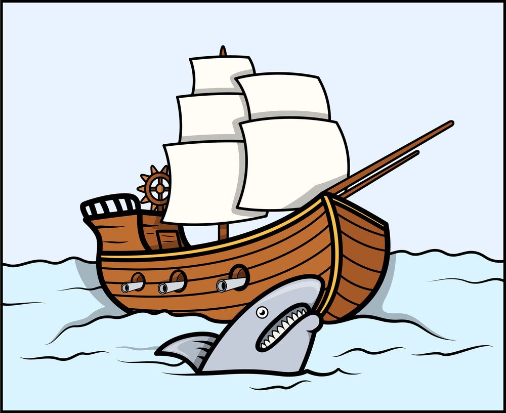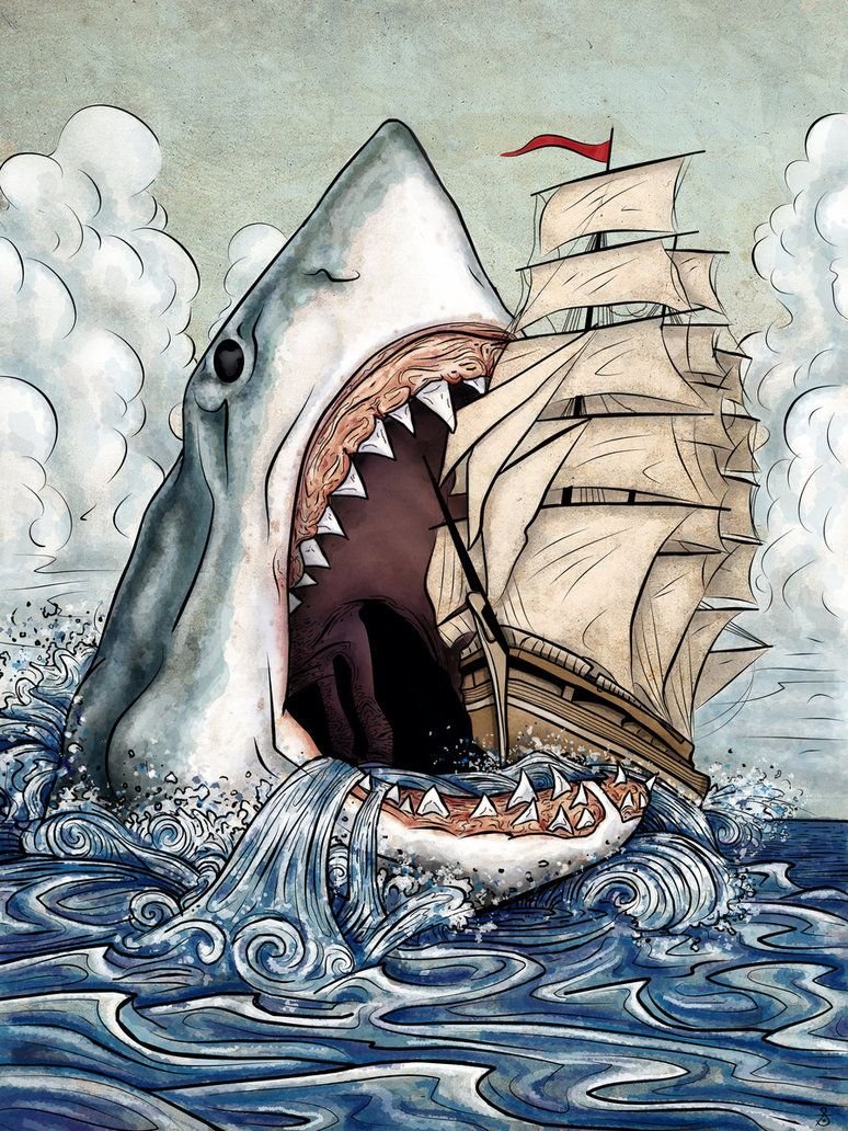 Акула и корабль рисунок