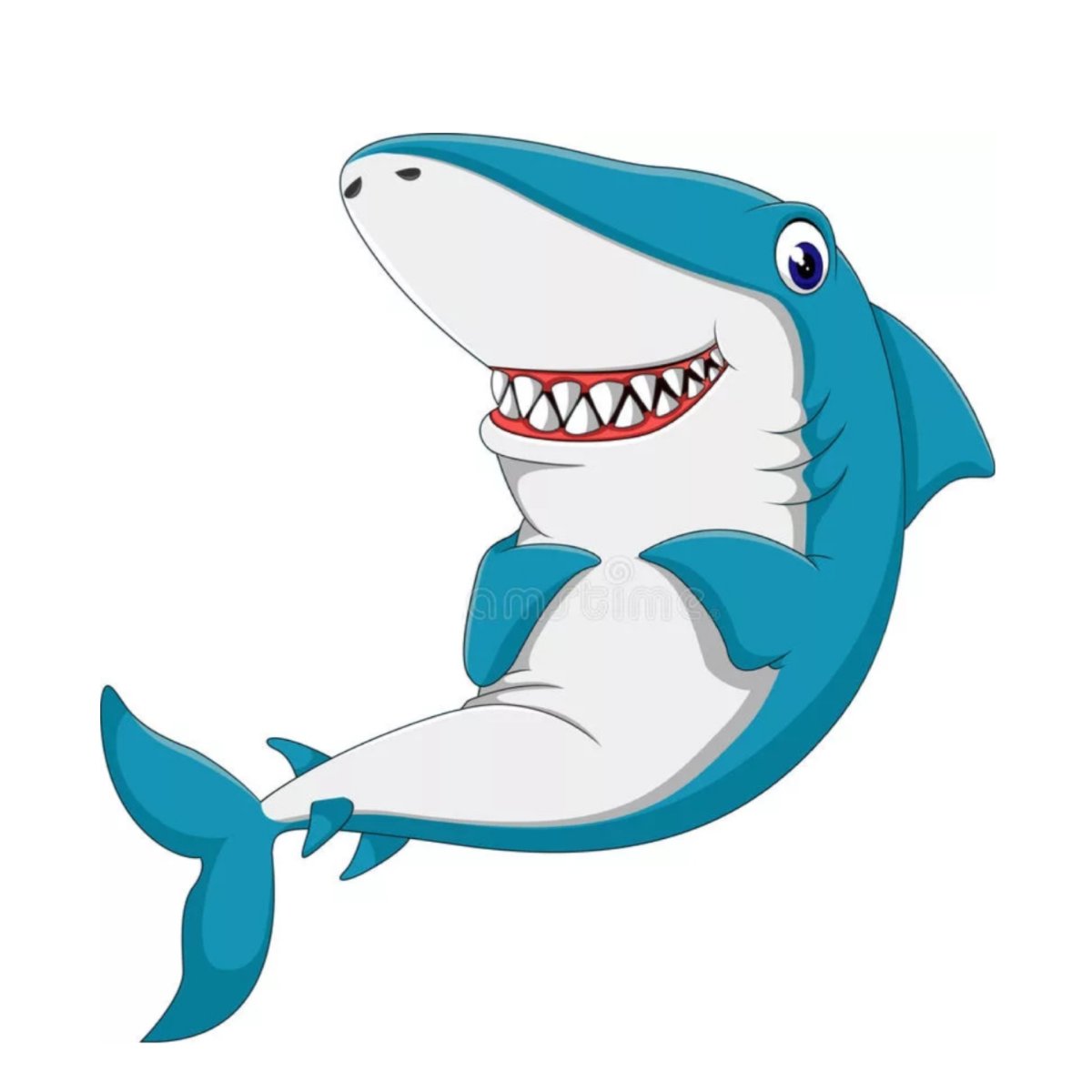Акула мультяшный на белом фоне