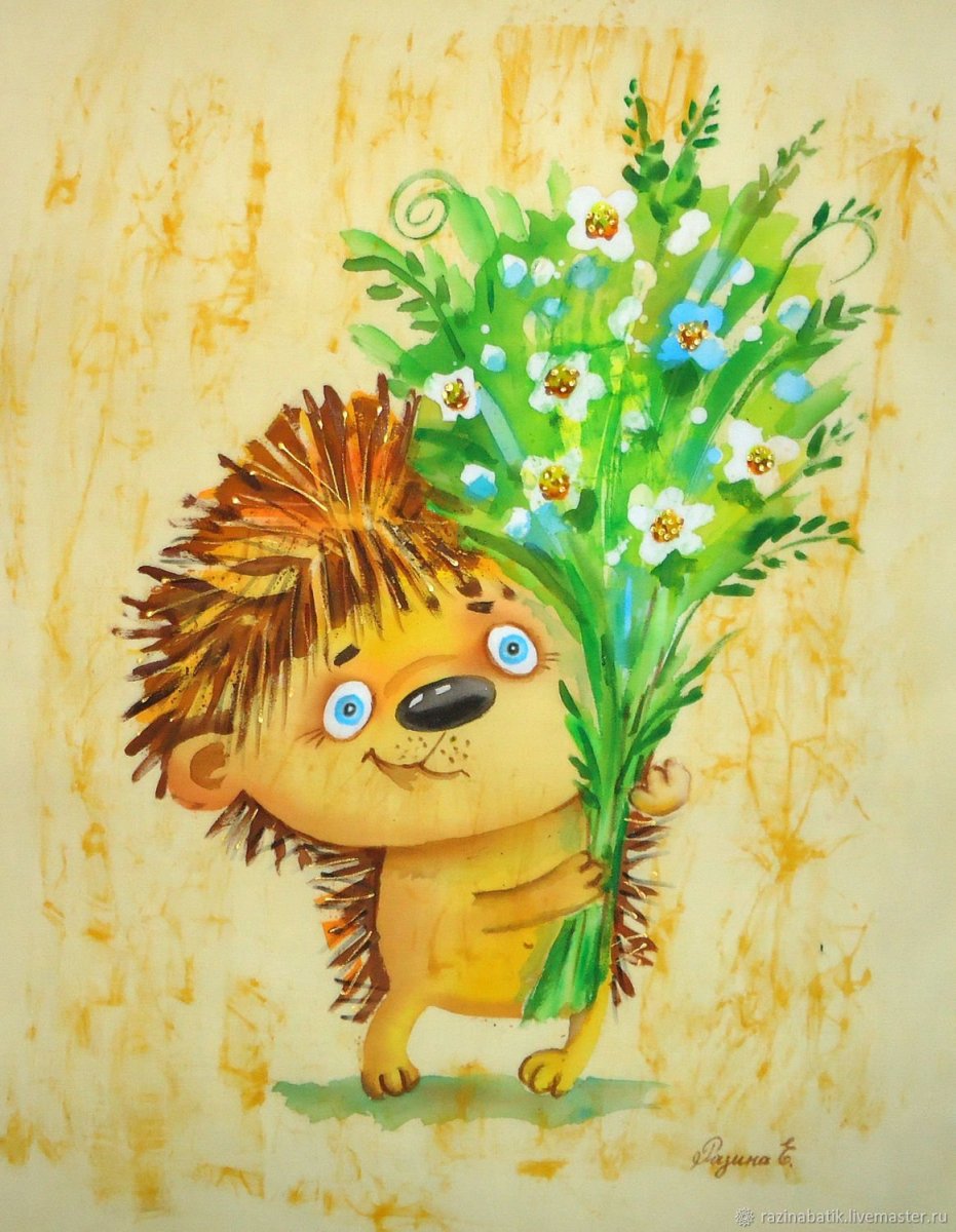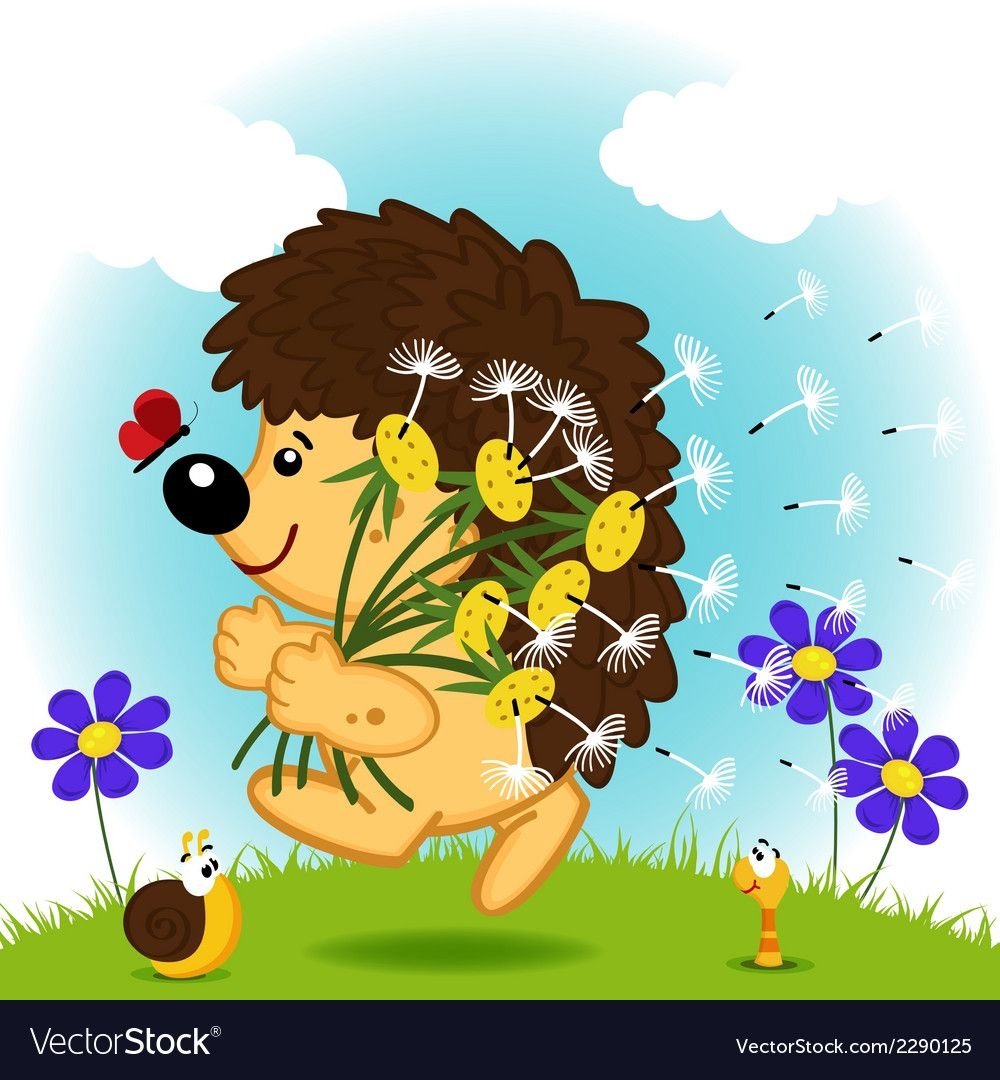 Мультяшный Ежик с цветами