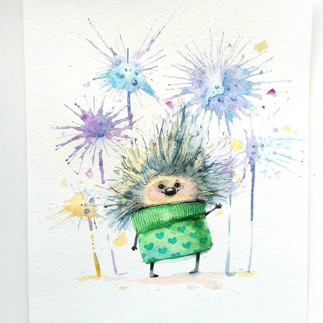Акварельные ежики