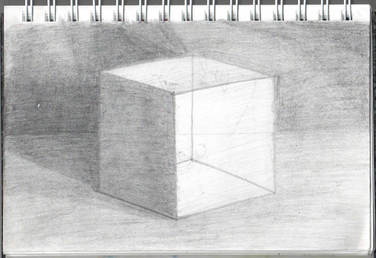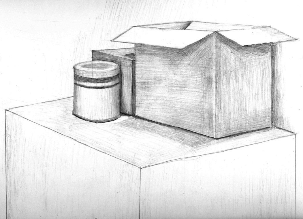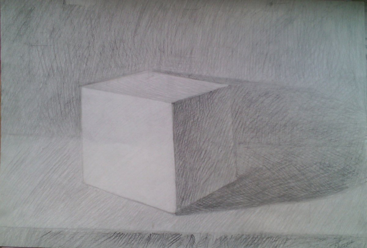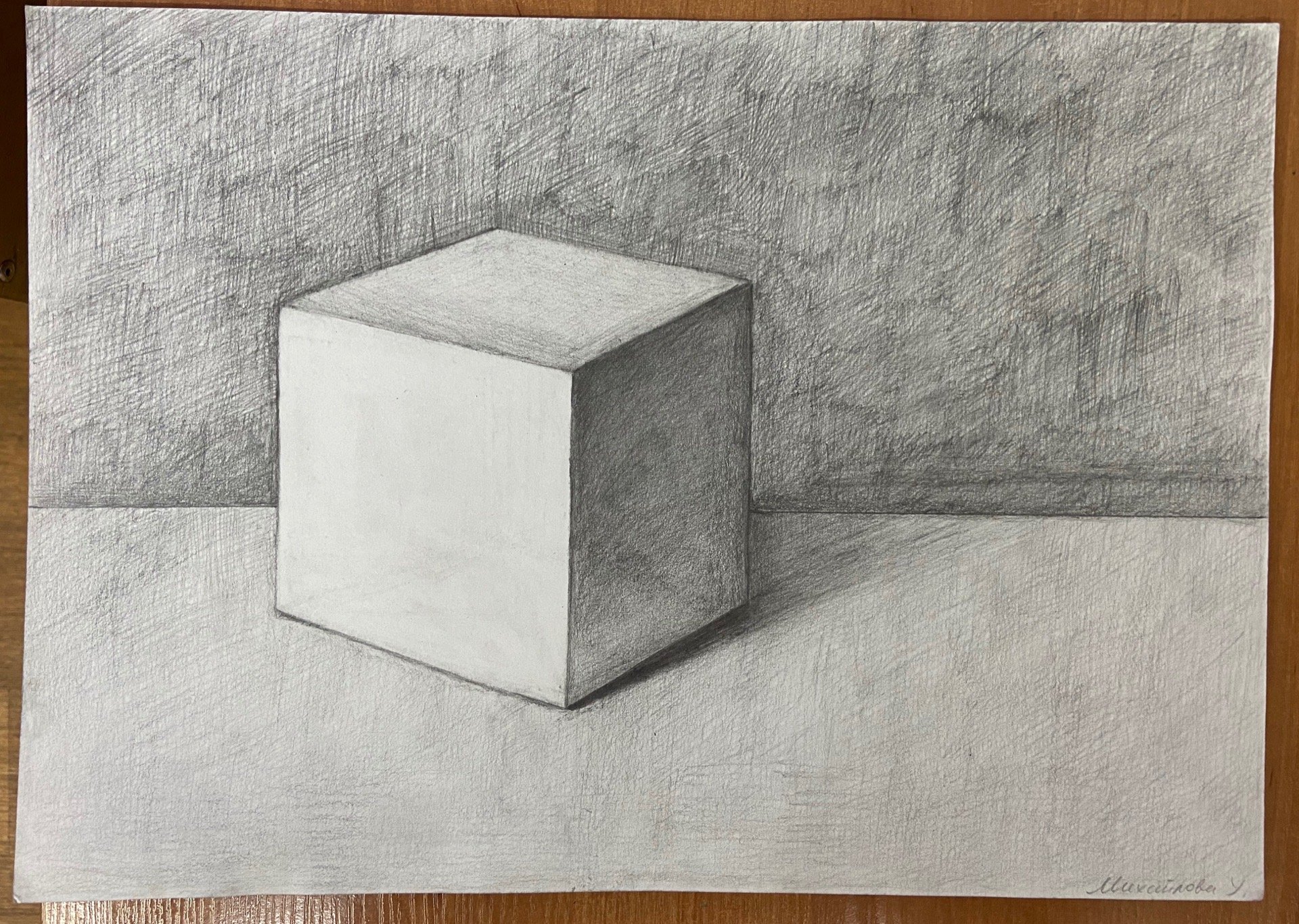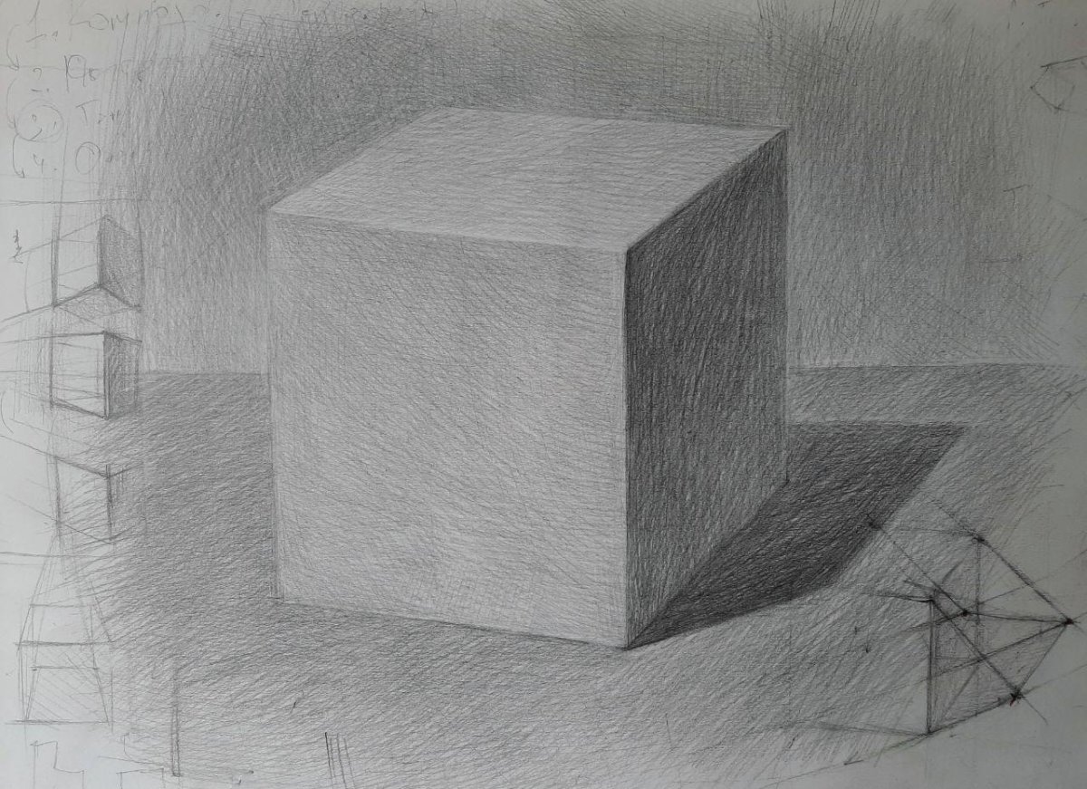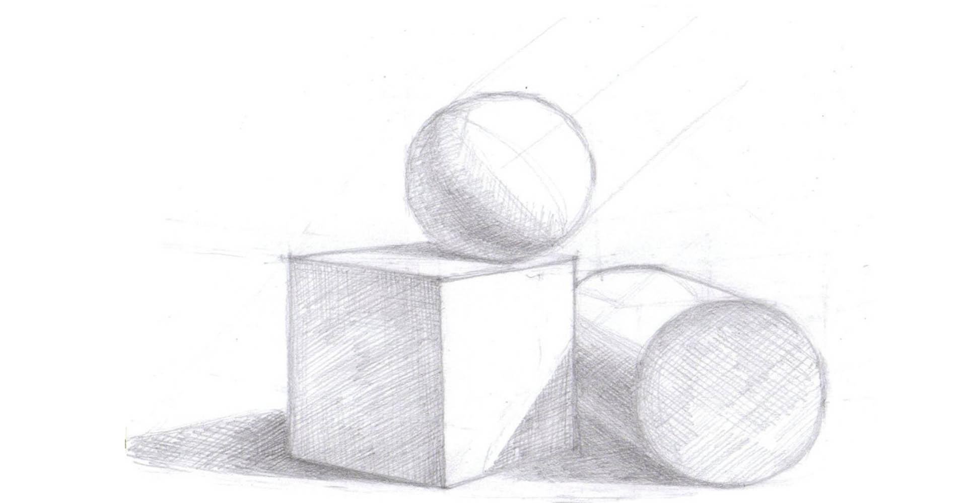 Натюрморт из геометрических форм (куб, конус, шар), Графика.