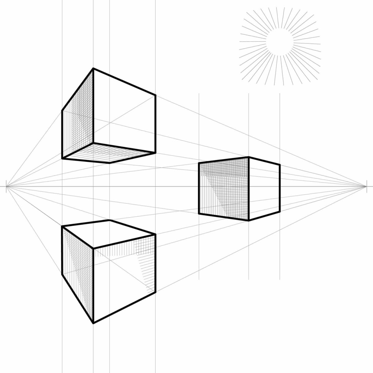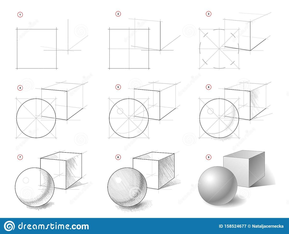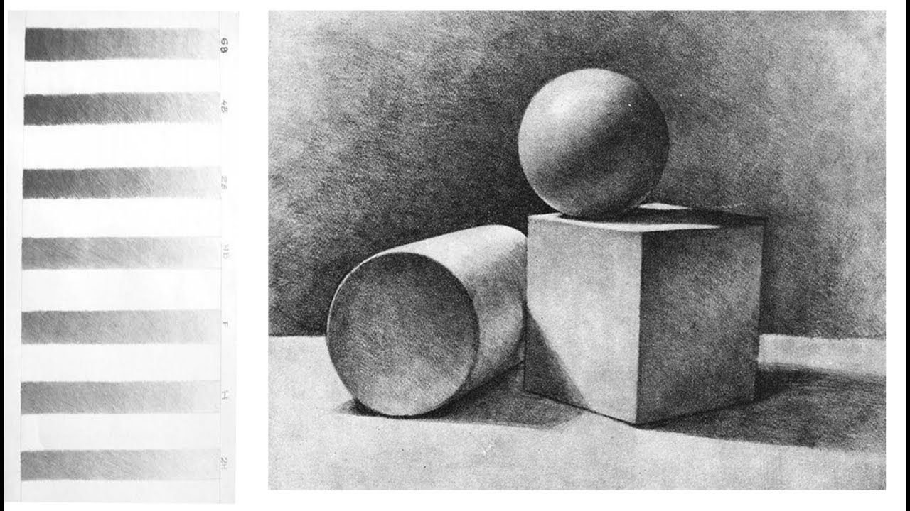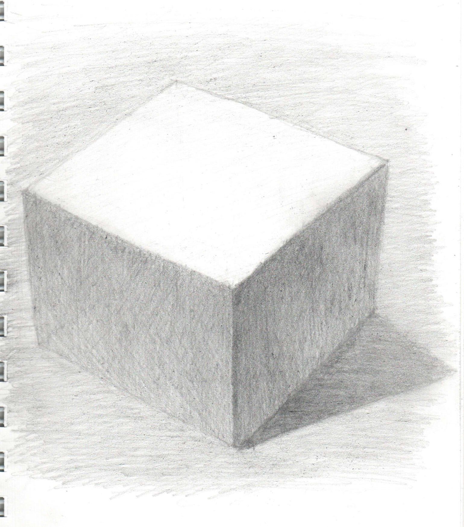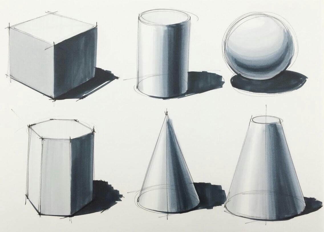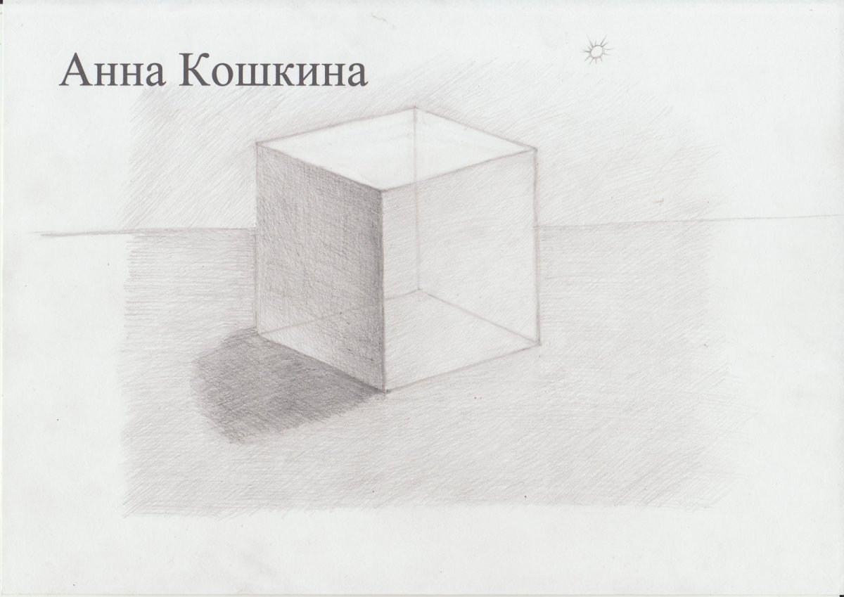 Натюрморт из геометрических форм (куб, конус, шар), Графика.