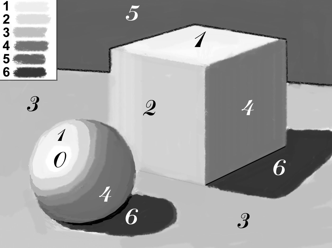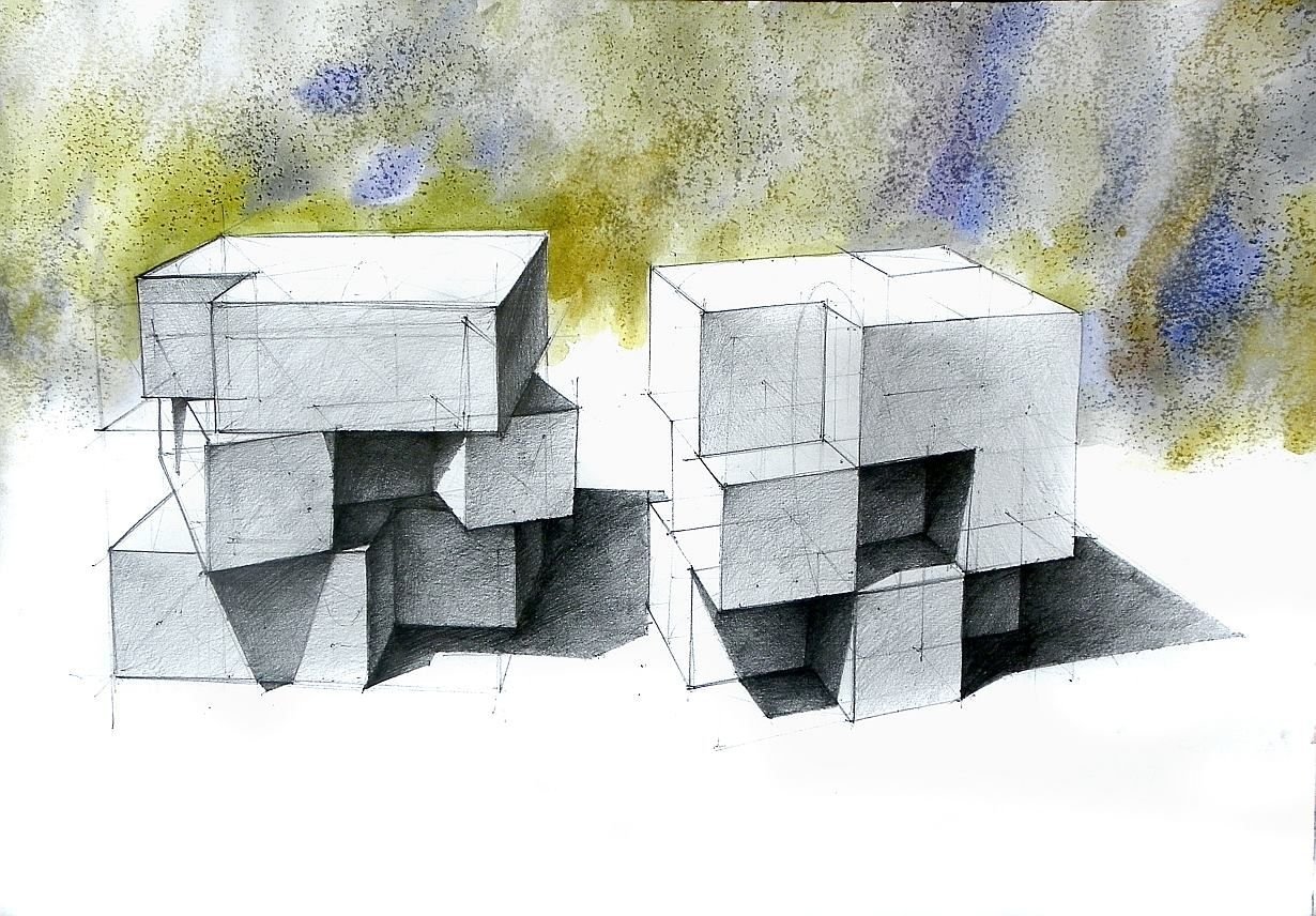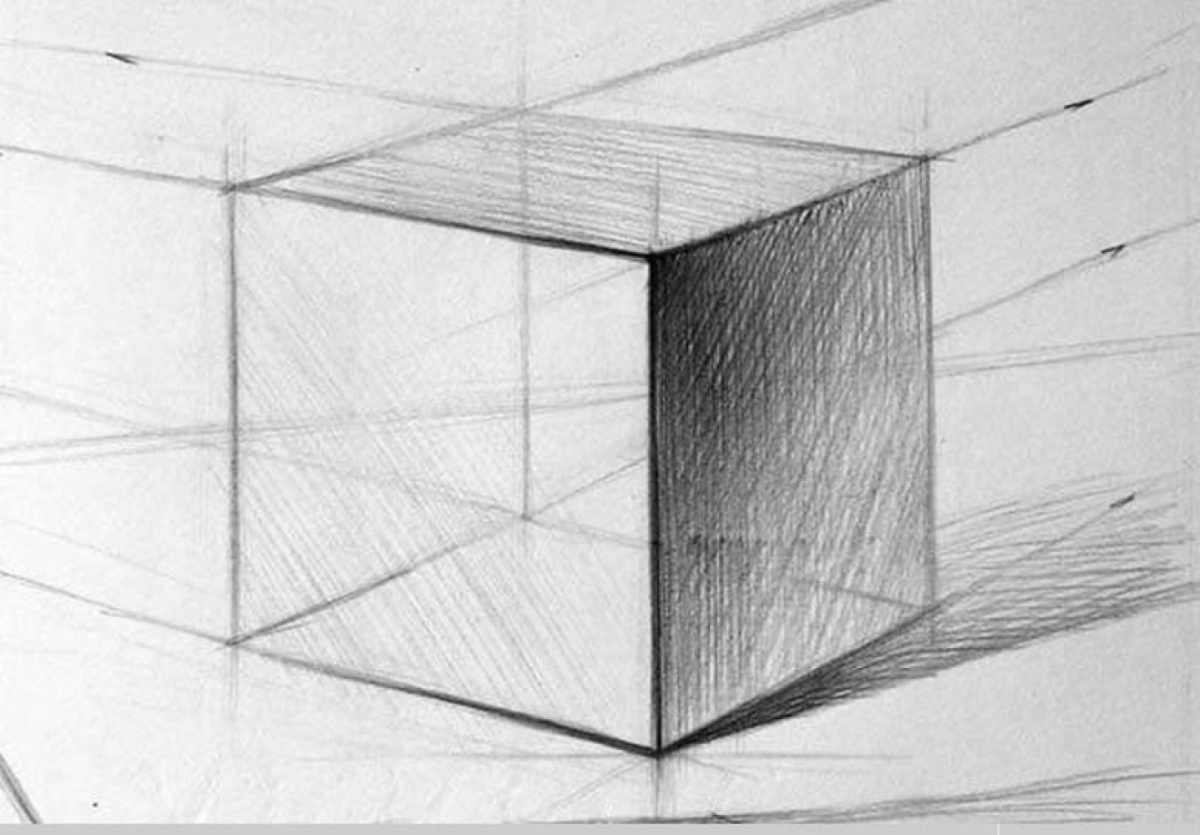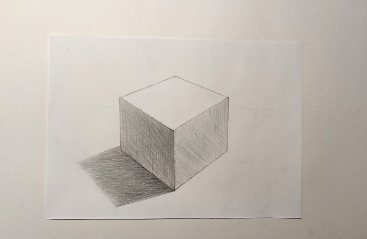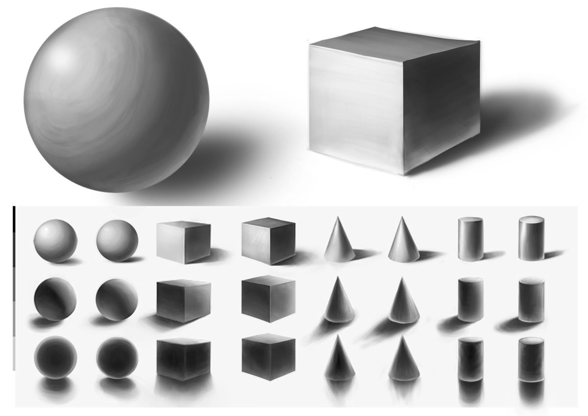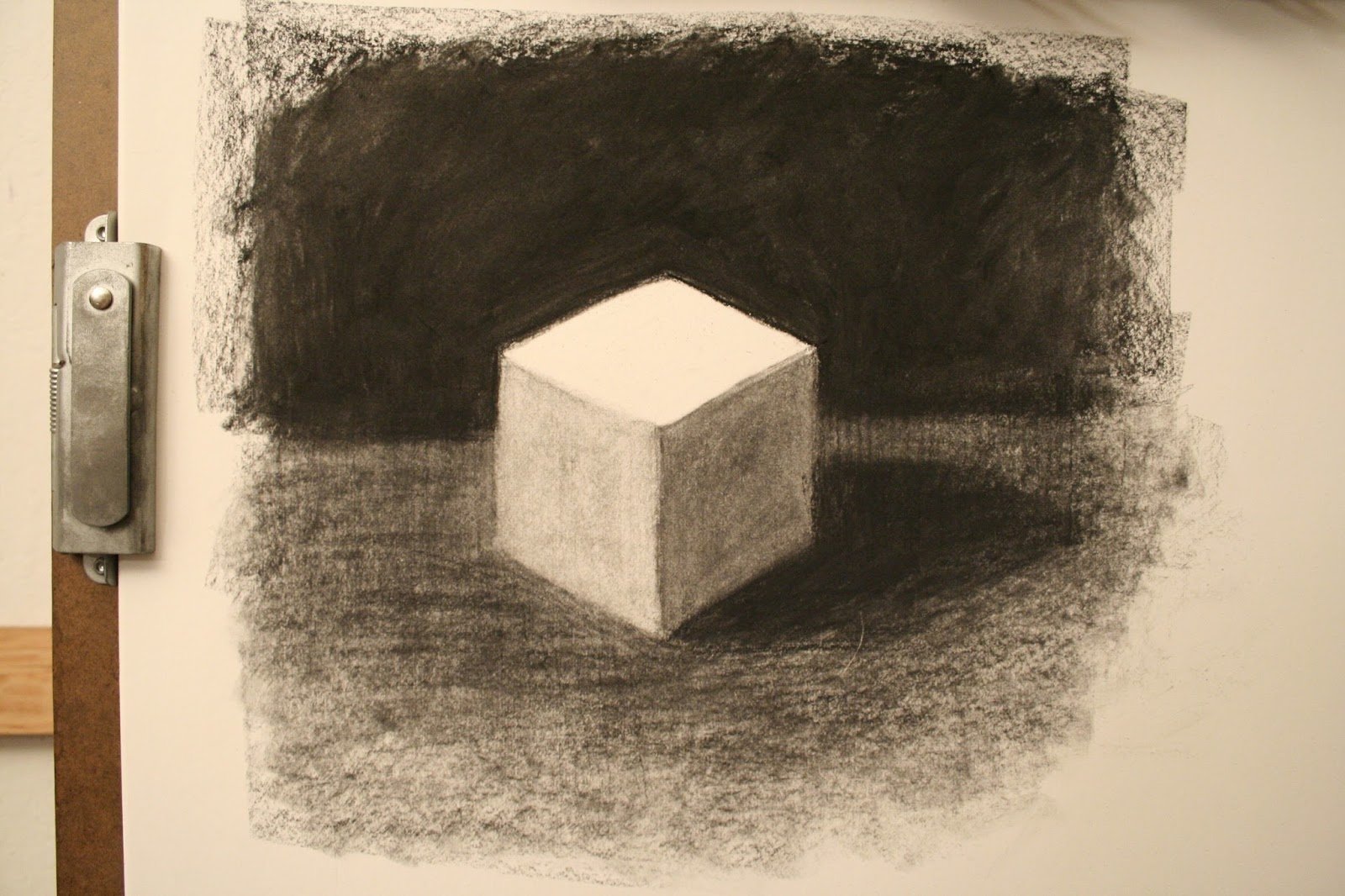 Натюрморт из геометрических форм (куб, конус, шар), Графика.