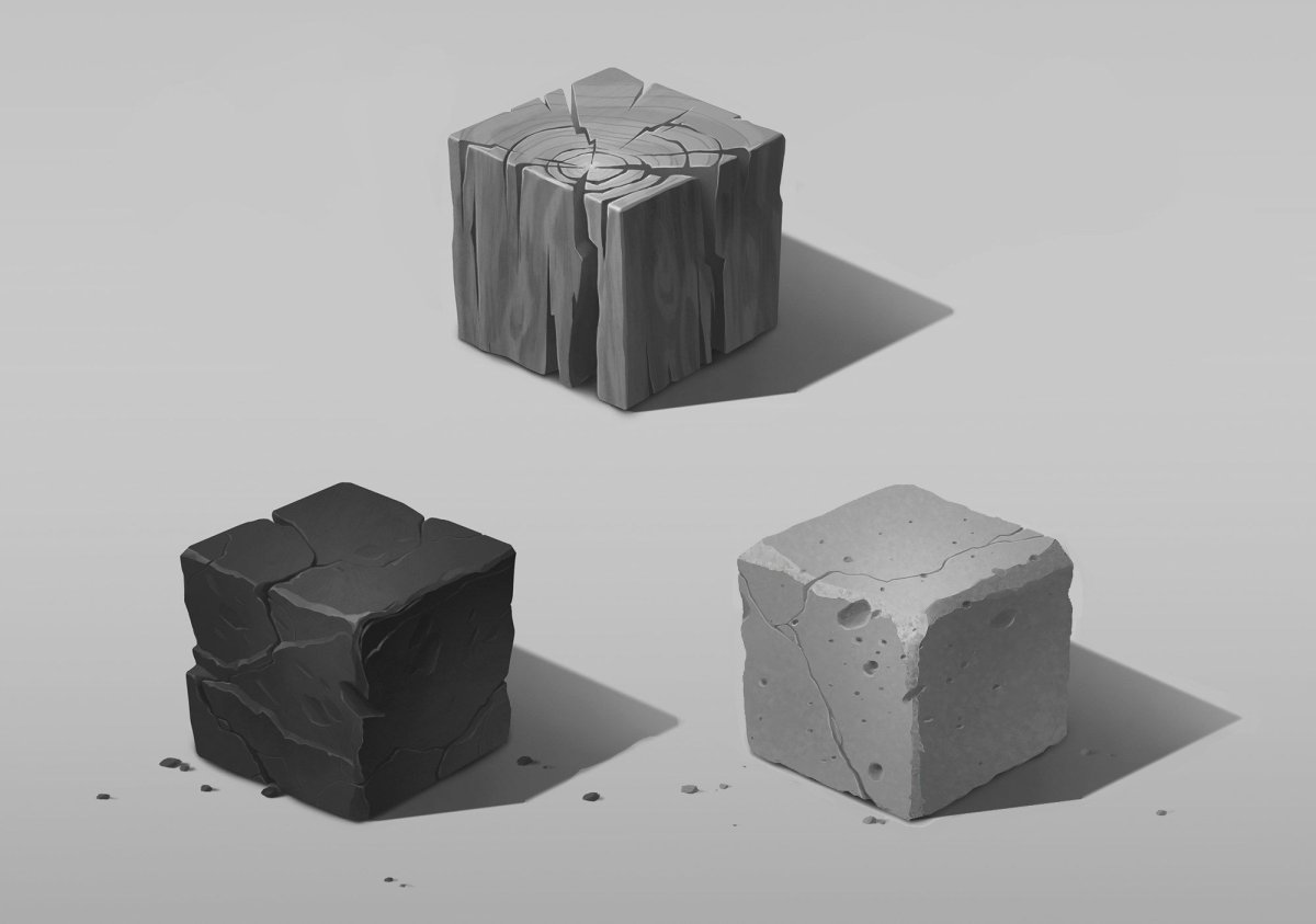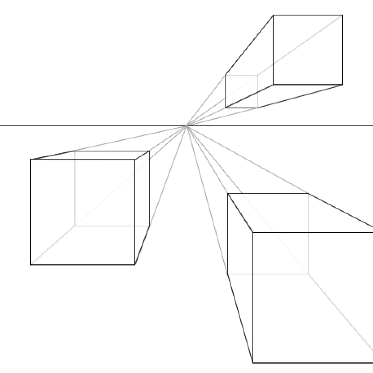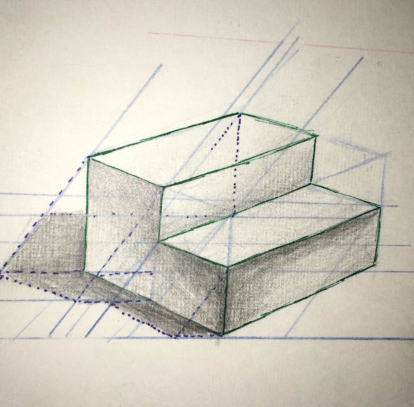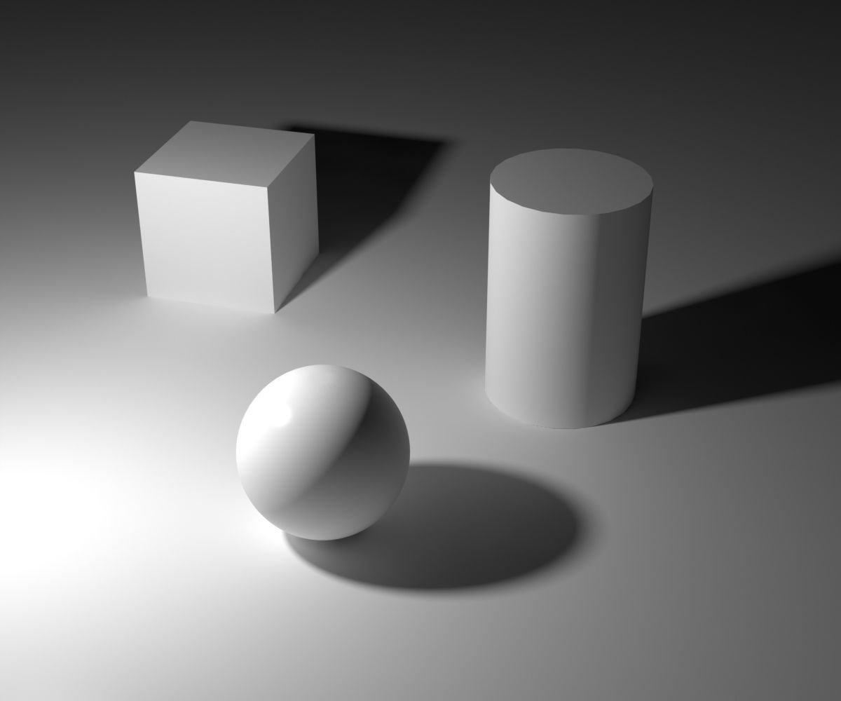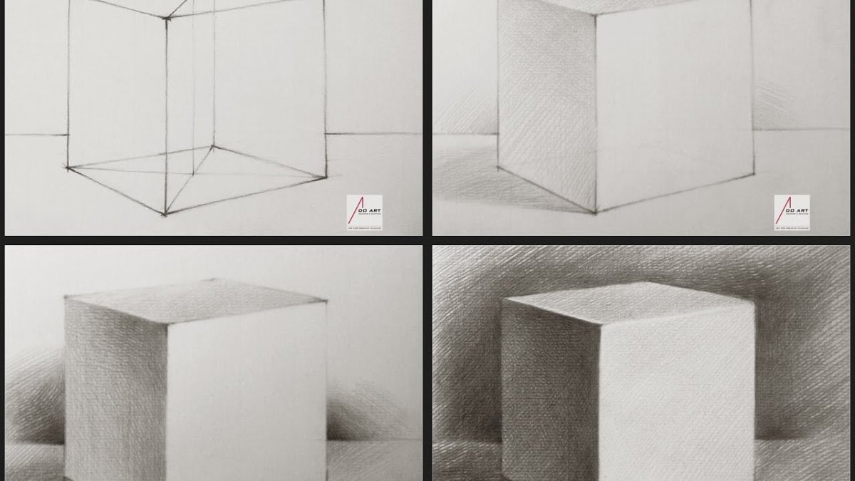 Натюрморт из геометрических форм (куб, конус, шар), Графика.