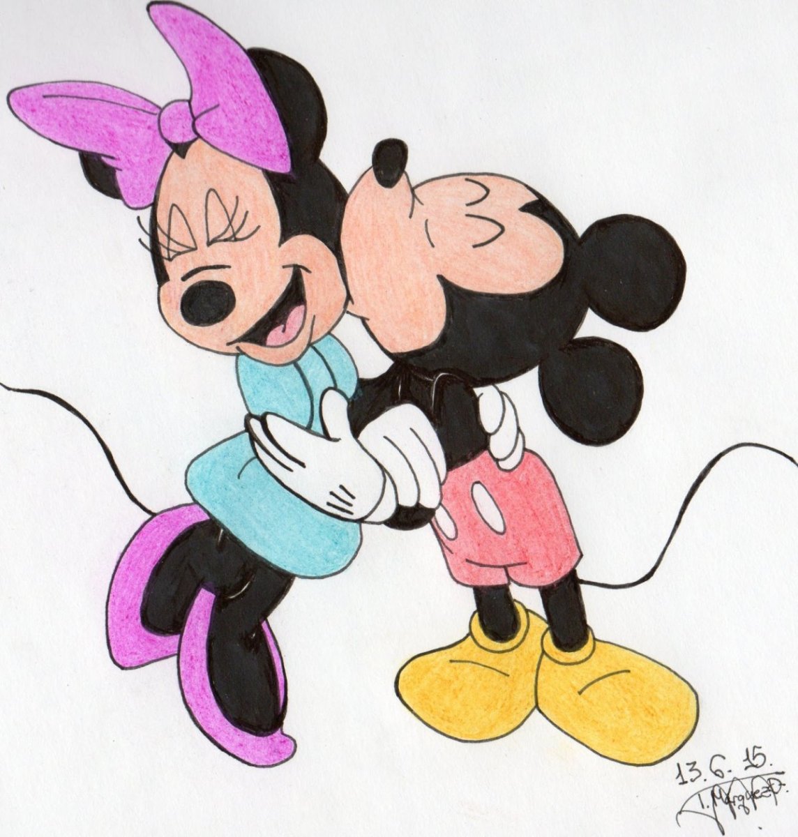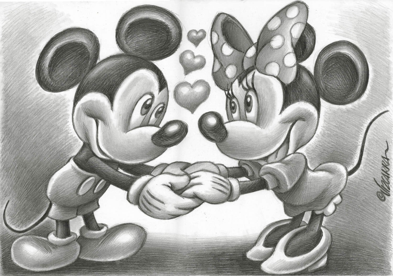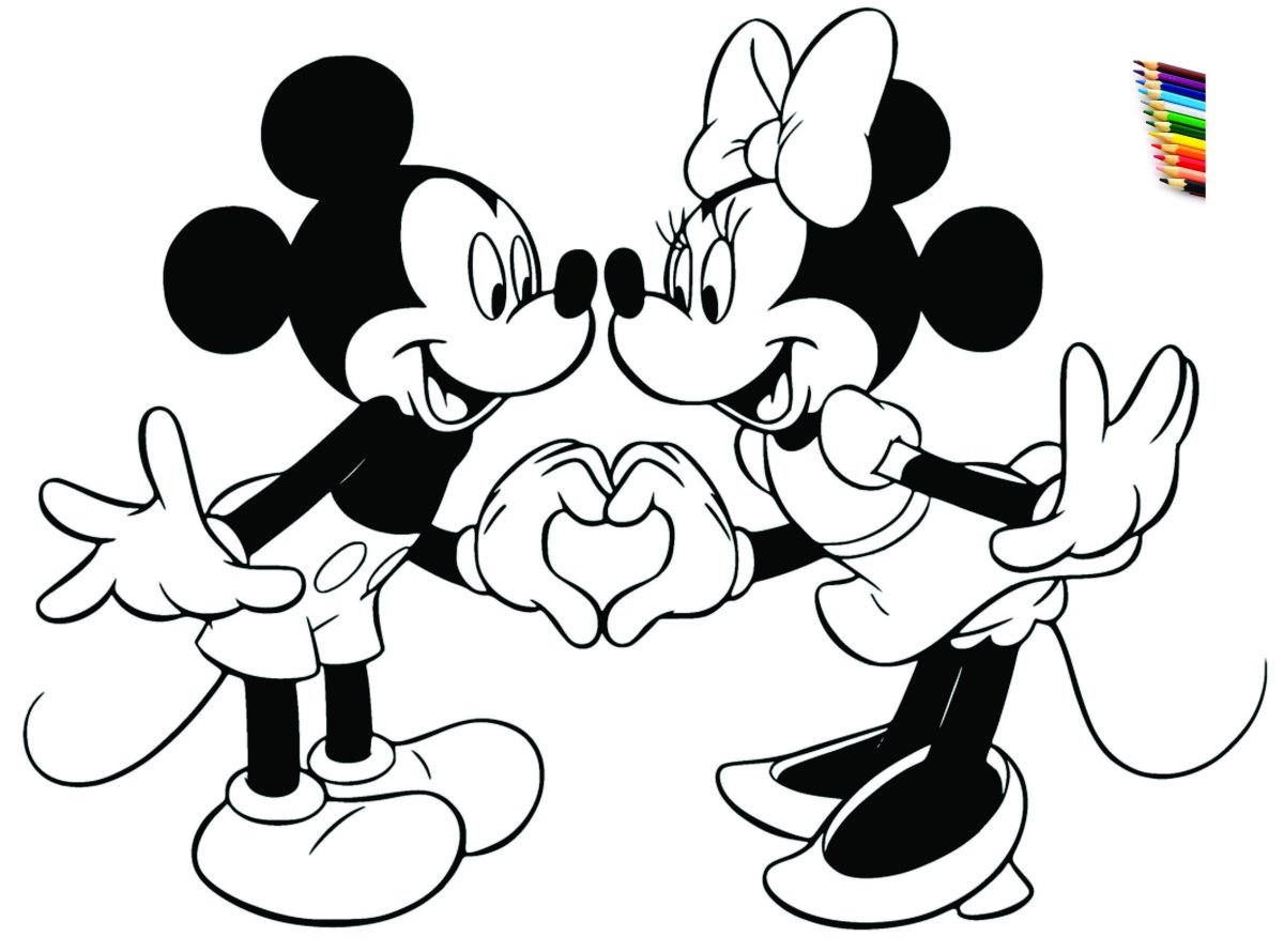 Микки и Минни Маус карандашом