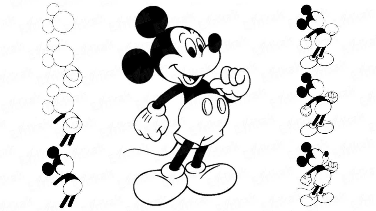 Срисовка Микки Мауса и мини