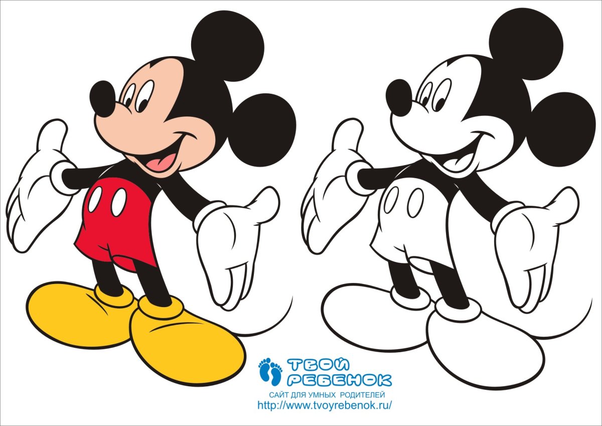 Рисунок Микки Мауса раскраска