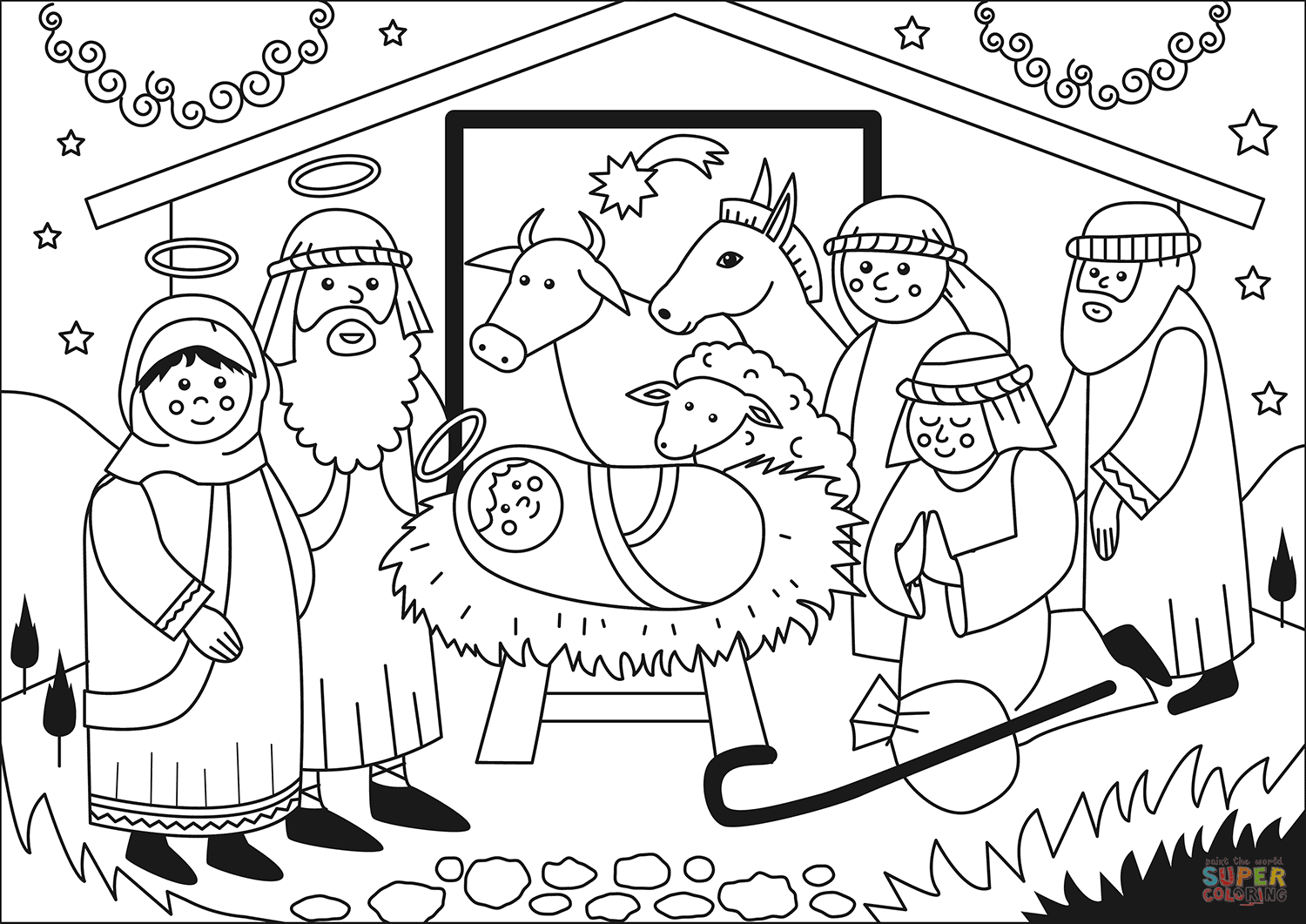 Пастухи Рождество раскраска