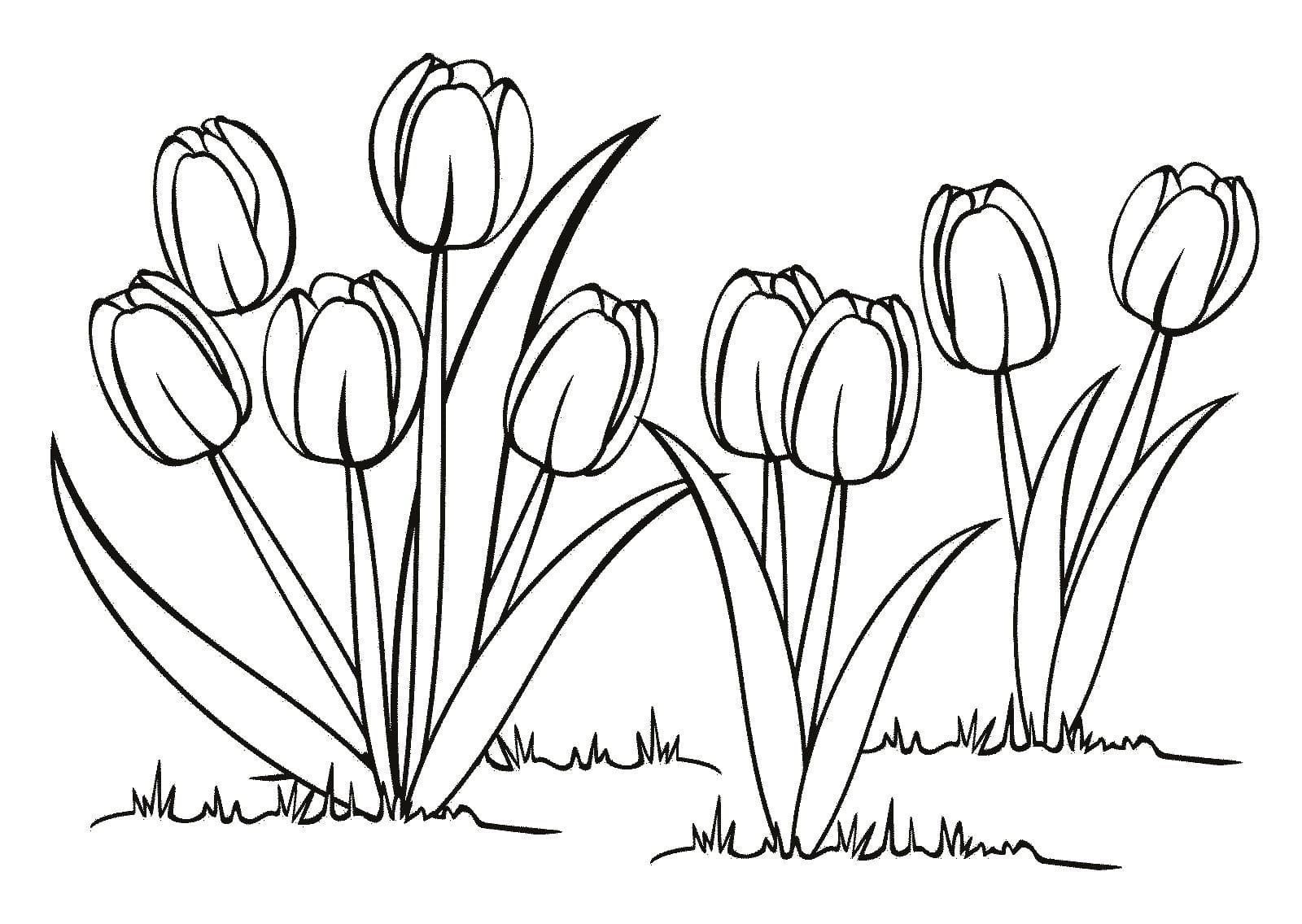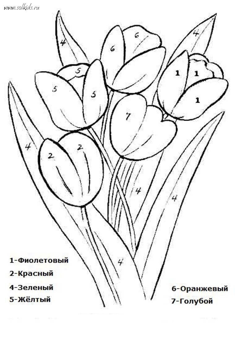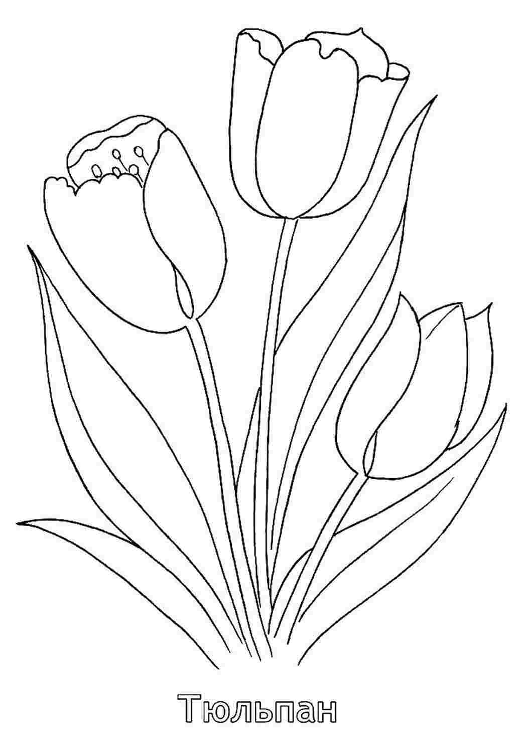 Шаблон цветок тюльпан раскрашиваем пальчиком