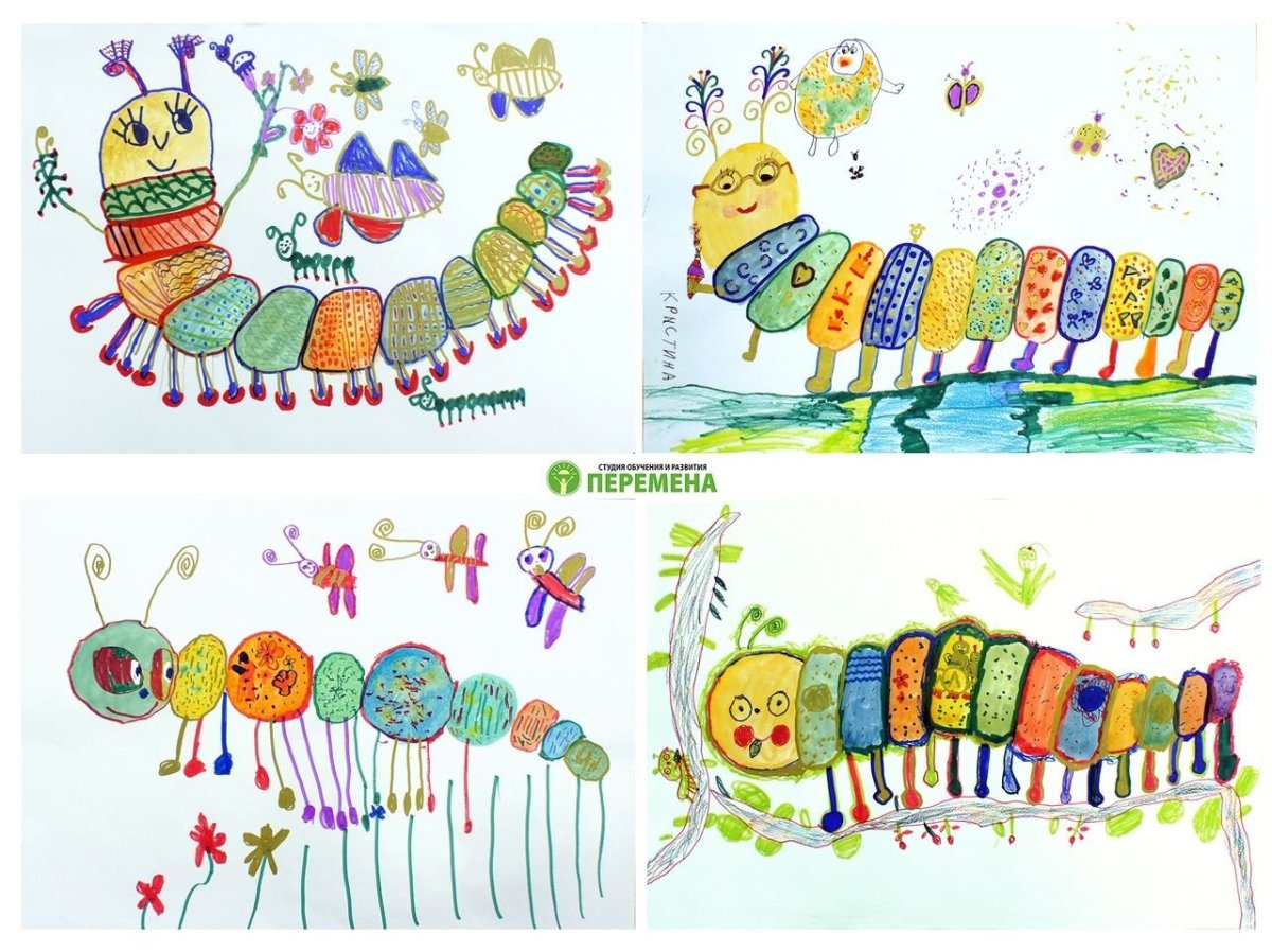 Идеи для рисования гусеницы с детьми