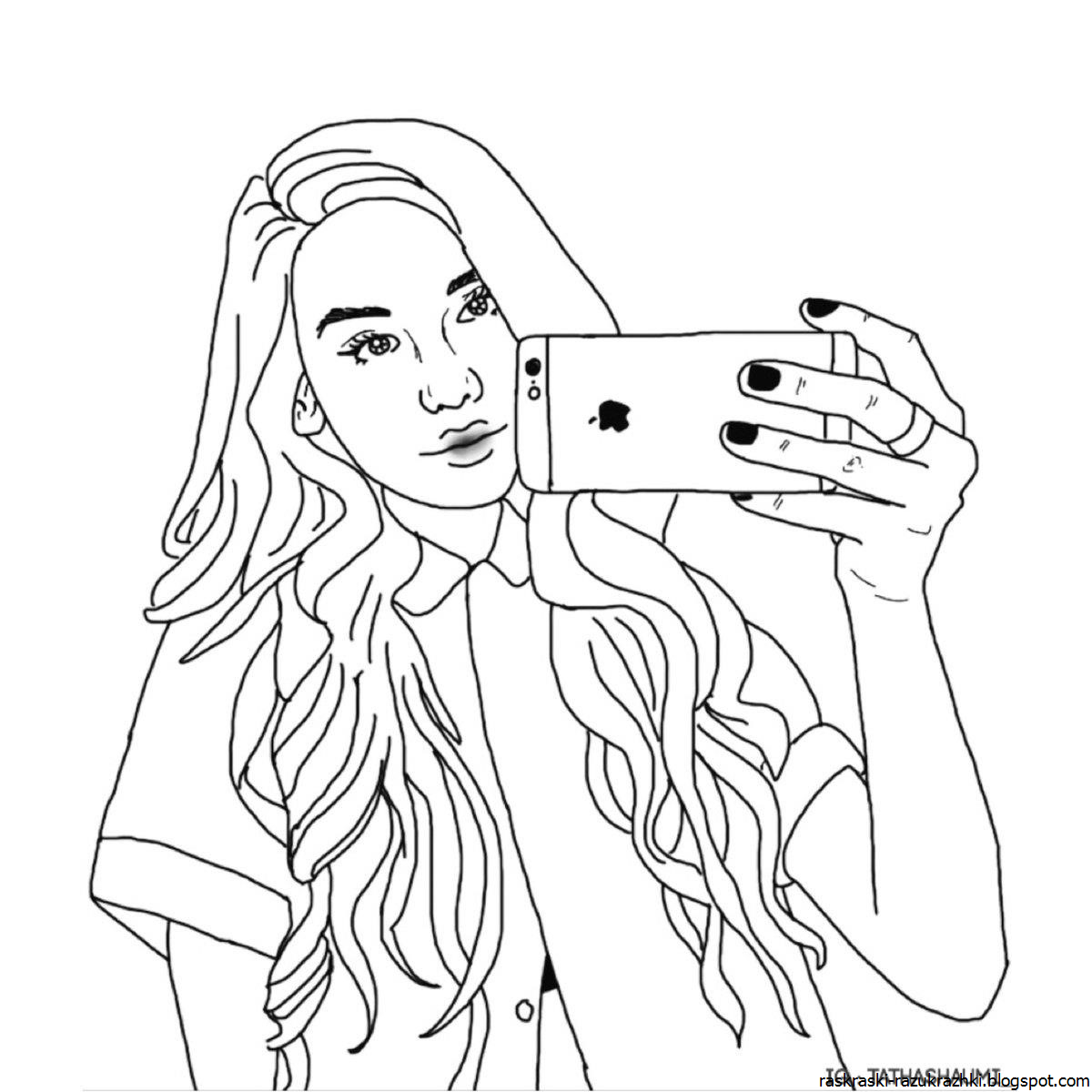Раскраска девушка с айфоном