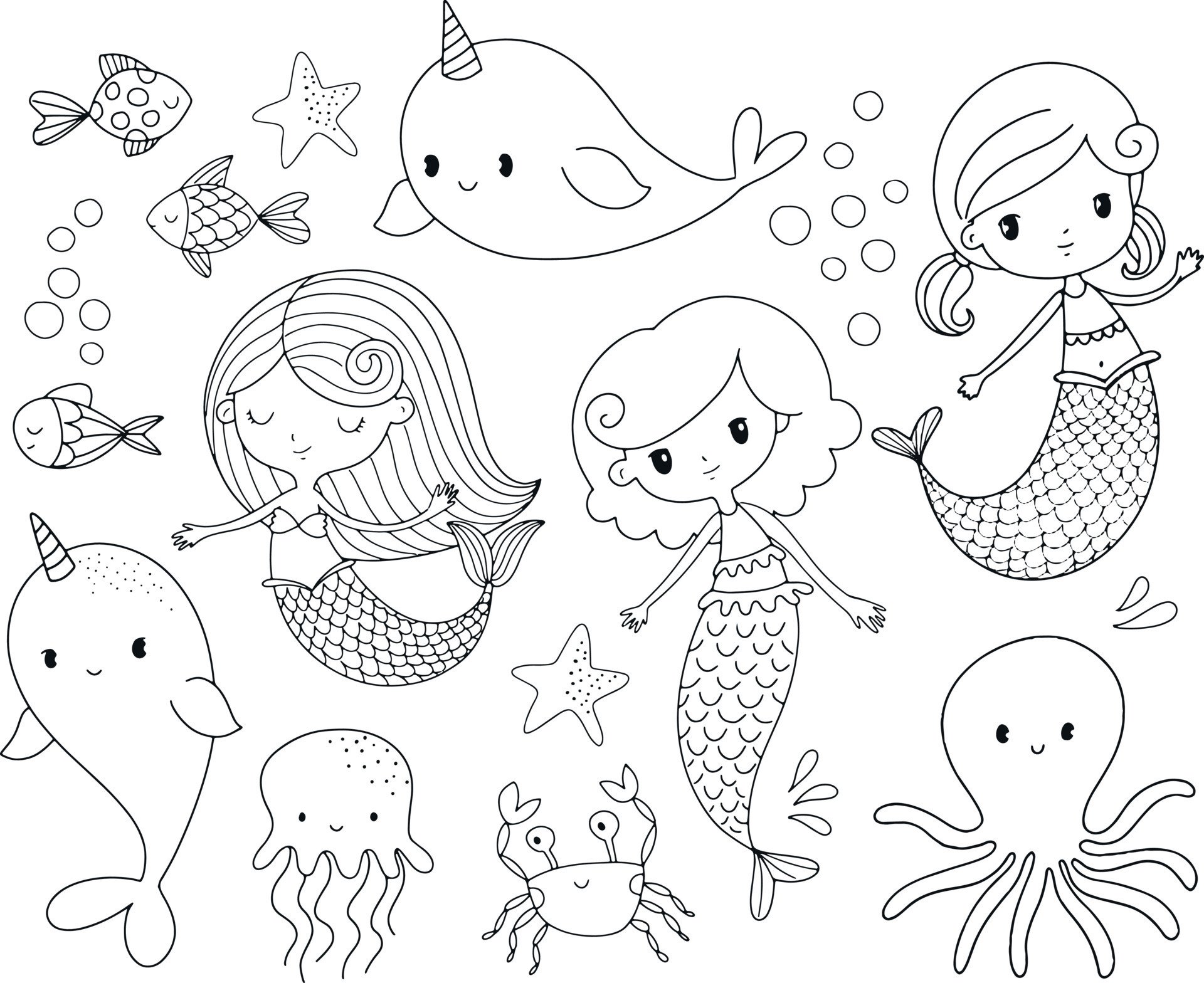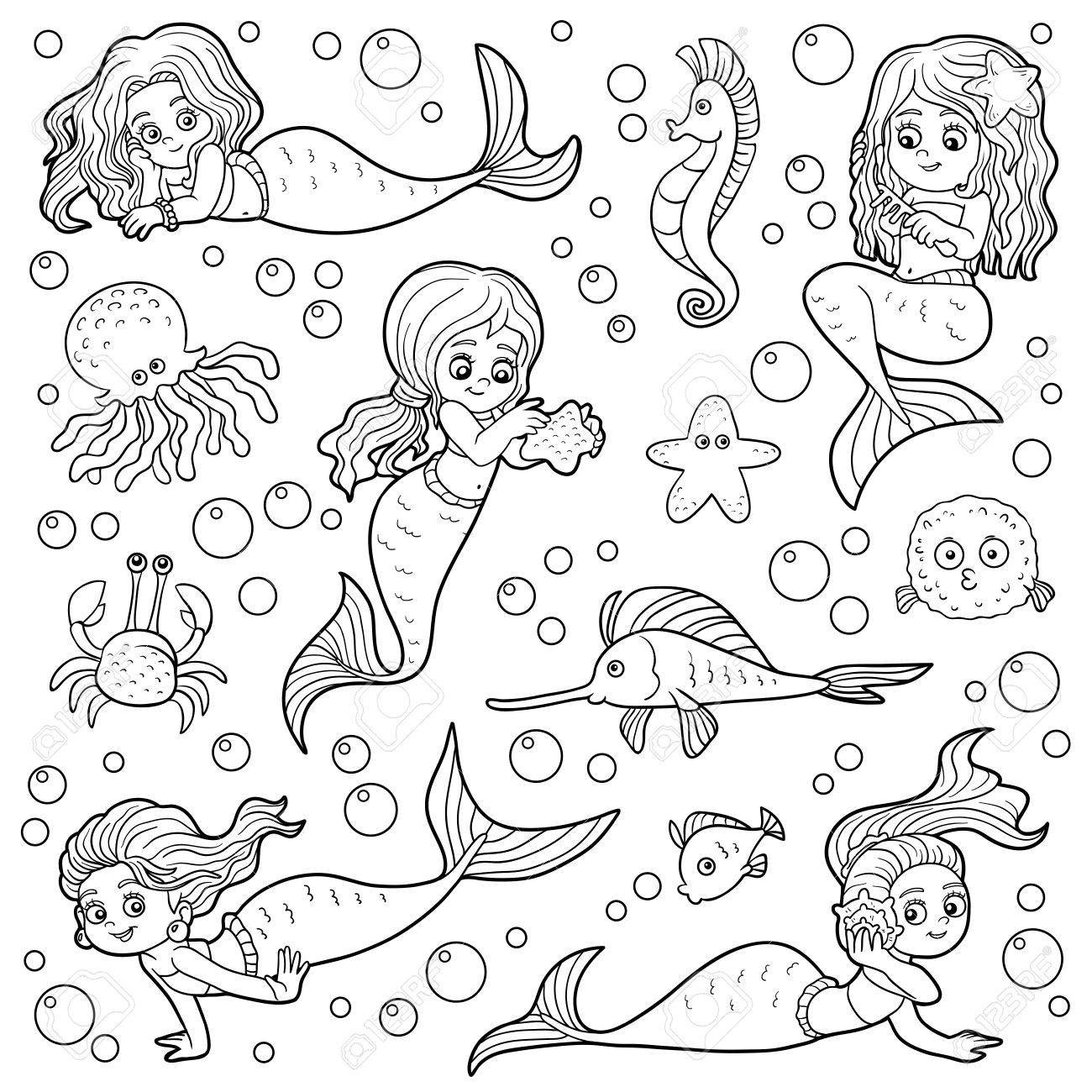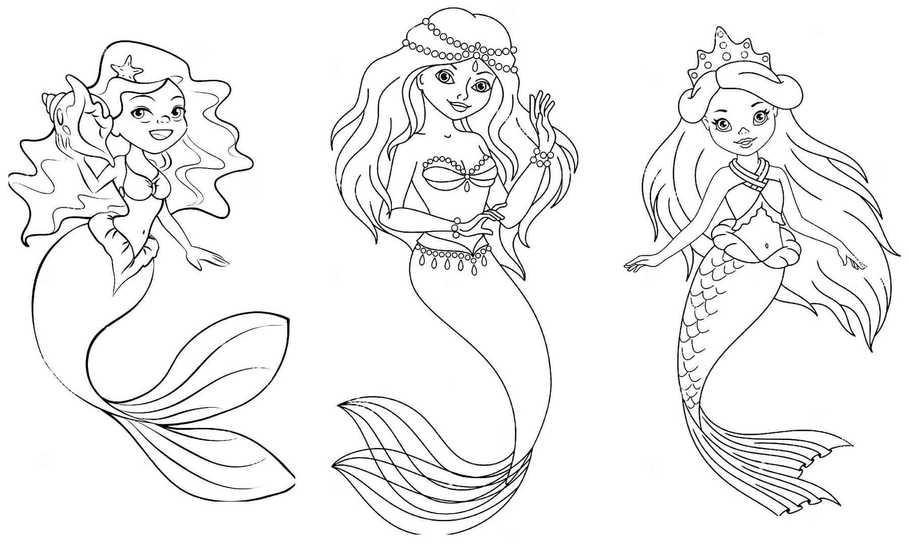 Раскраска маленькие русалки