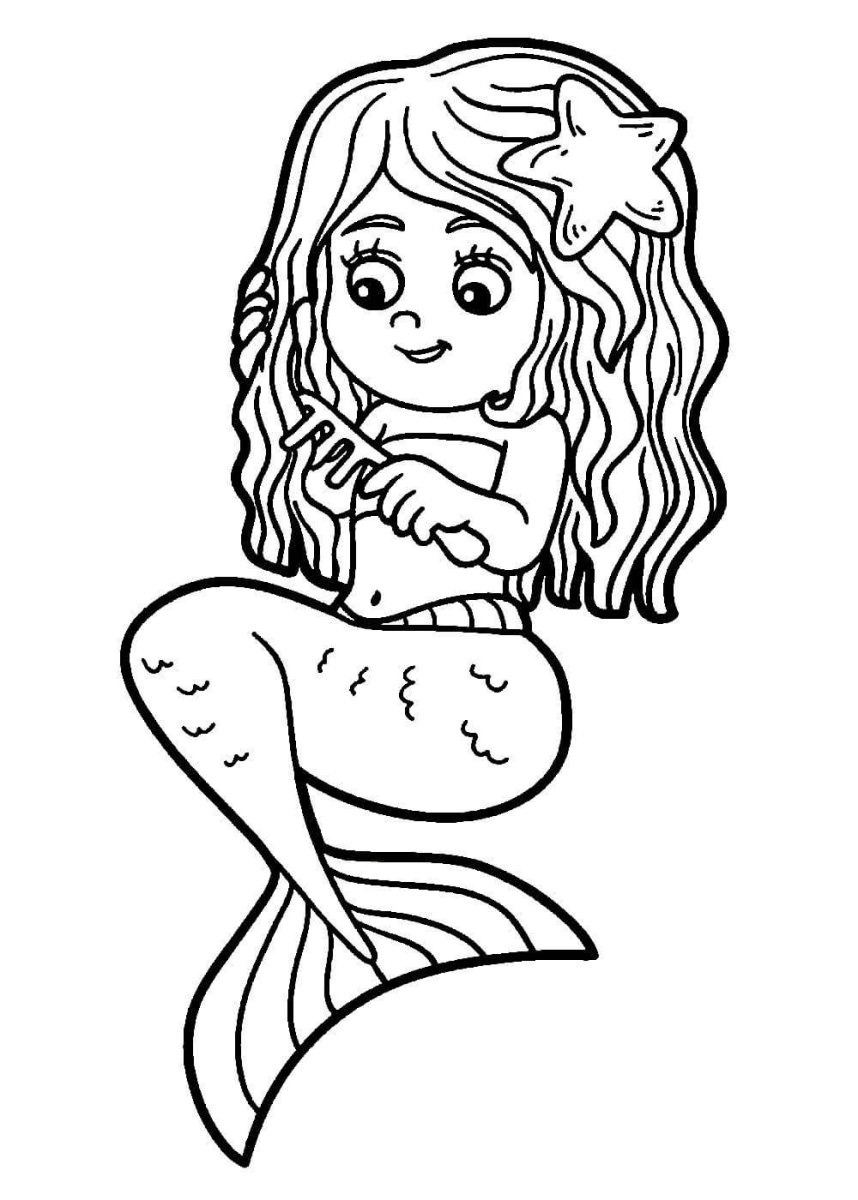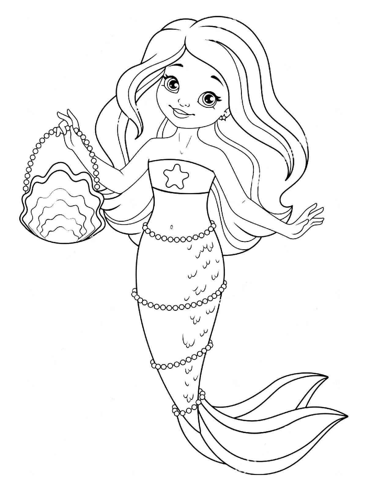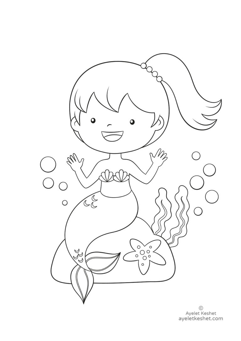 Русалка раскраска для малышей