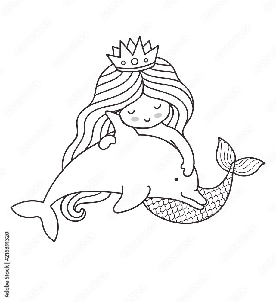 Раскраска Дельфин и Русалка