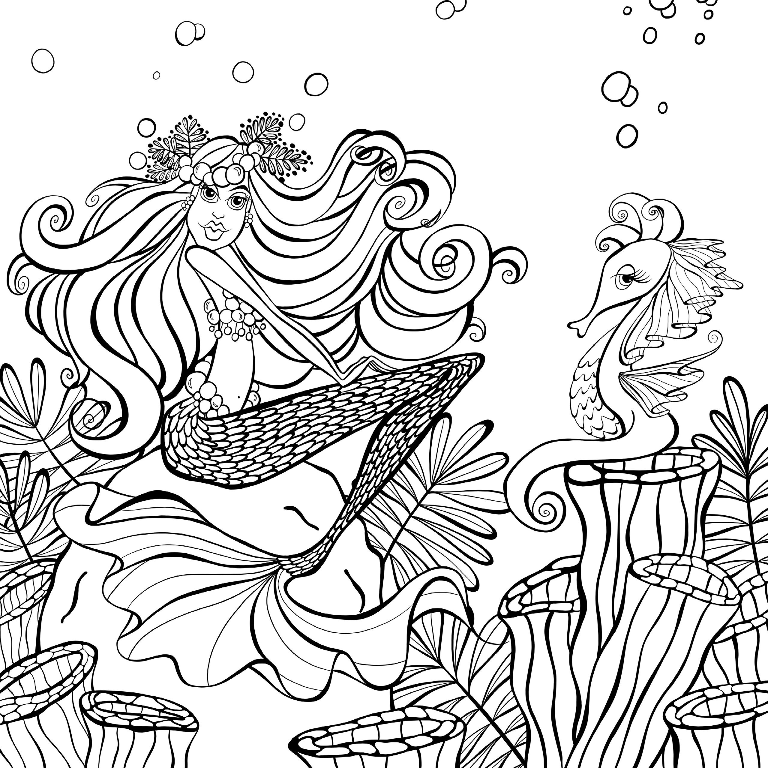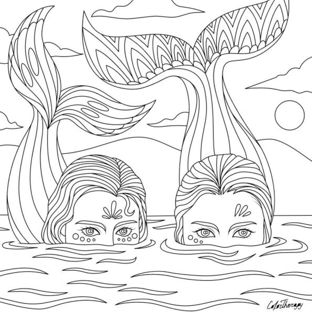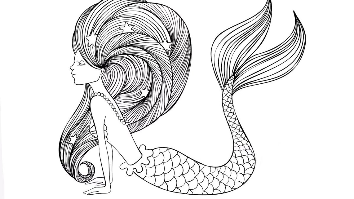 Трудные раскраска русалки