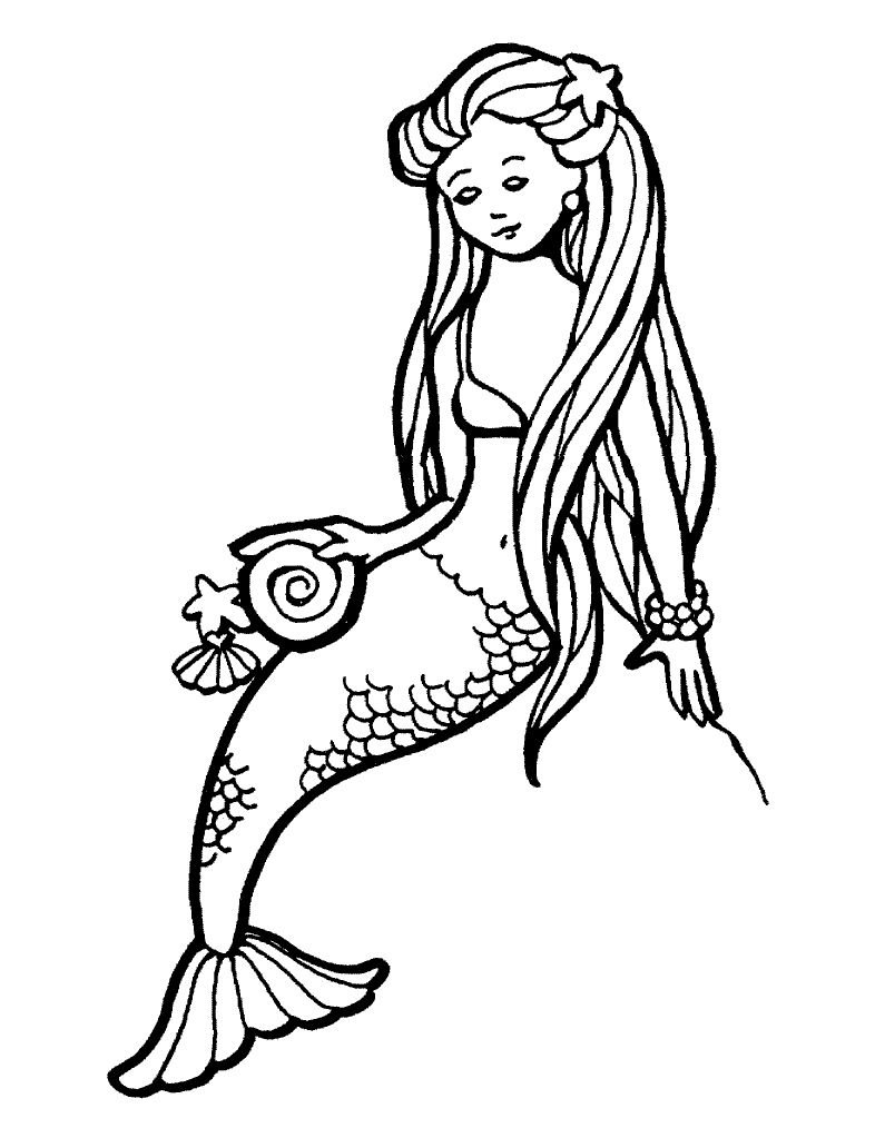 Раскраски для девочек с длинными волосами русалки