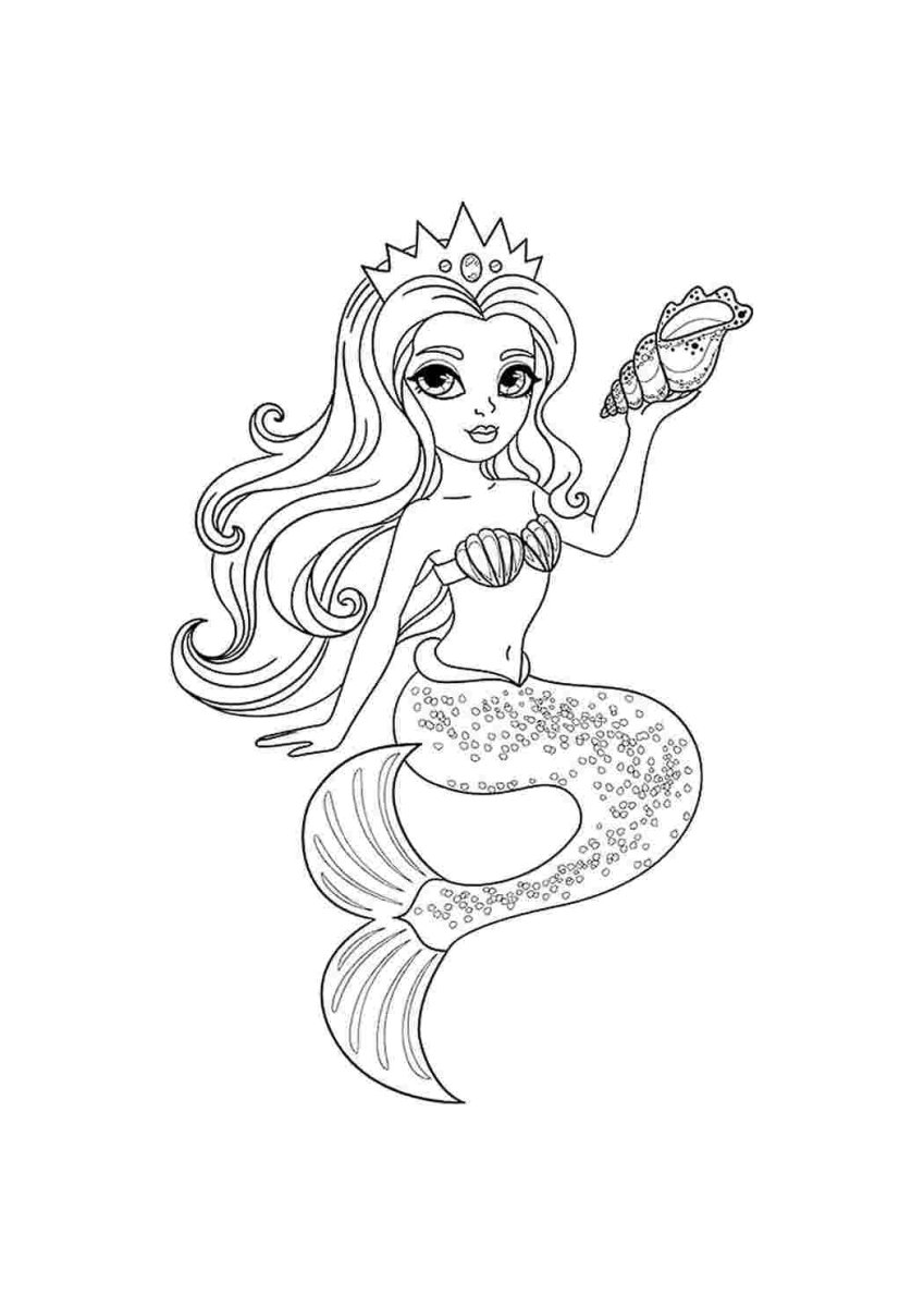 Русалка с короной раскраска