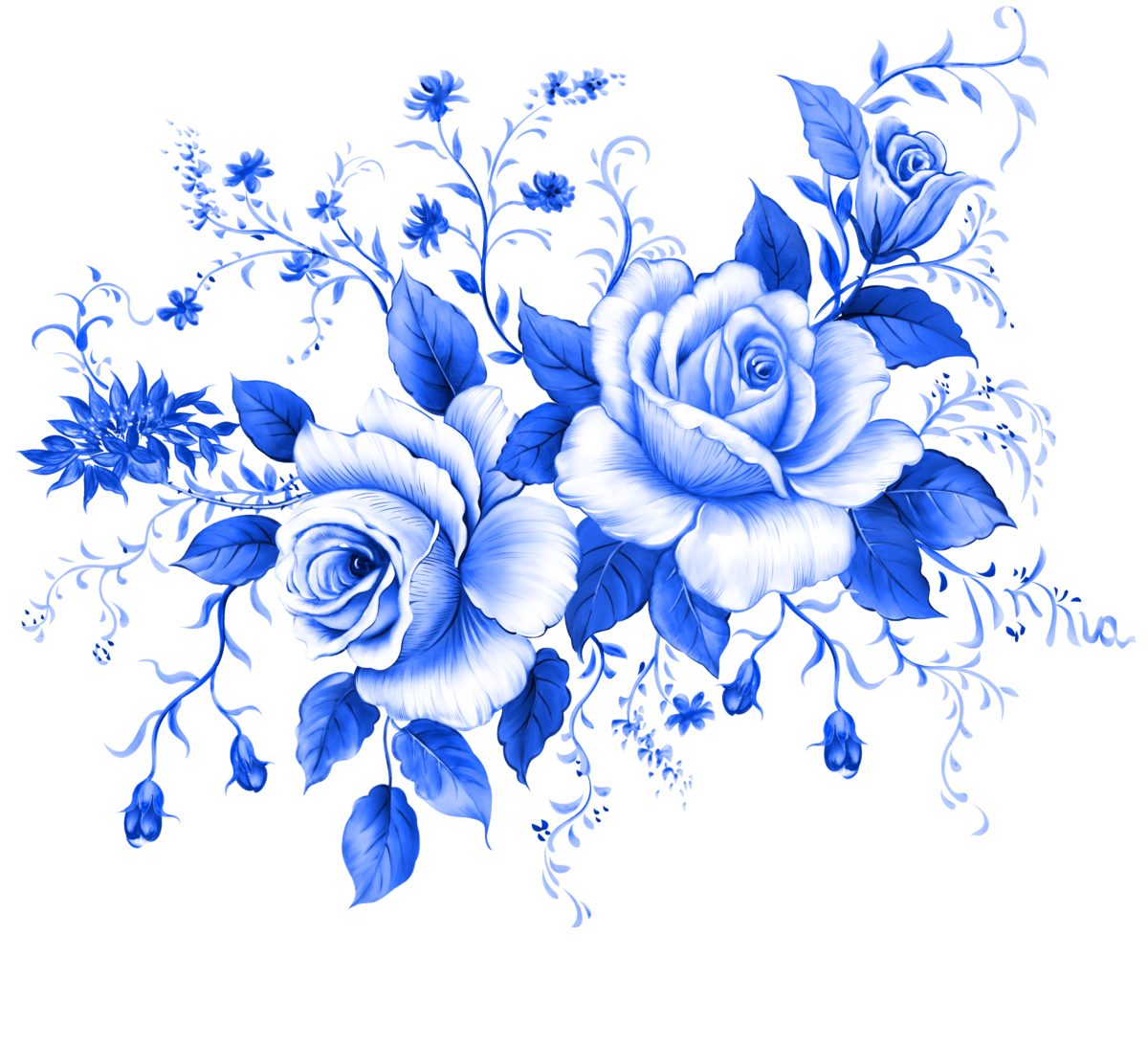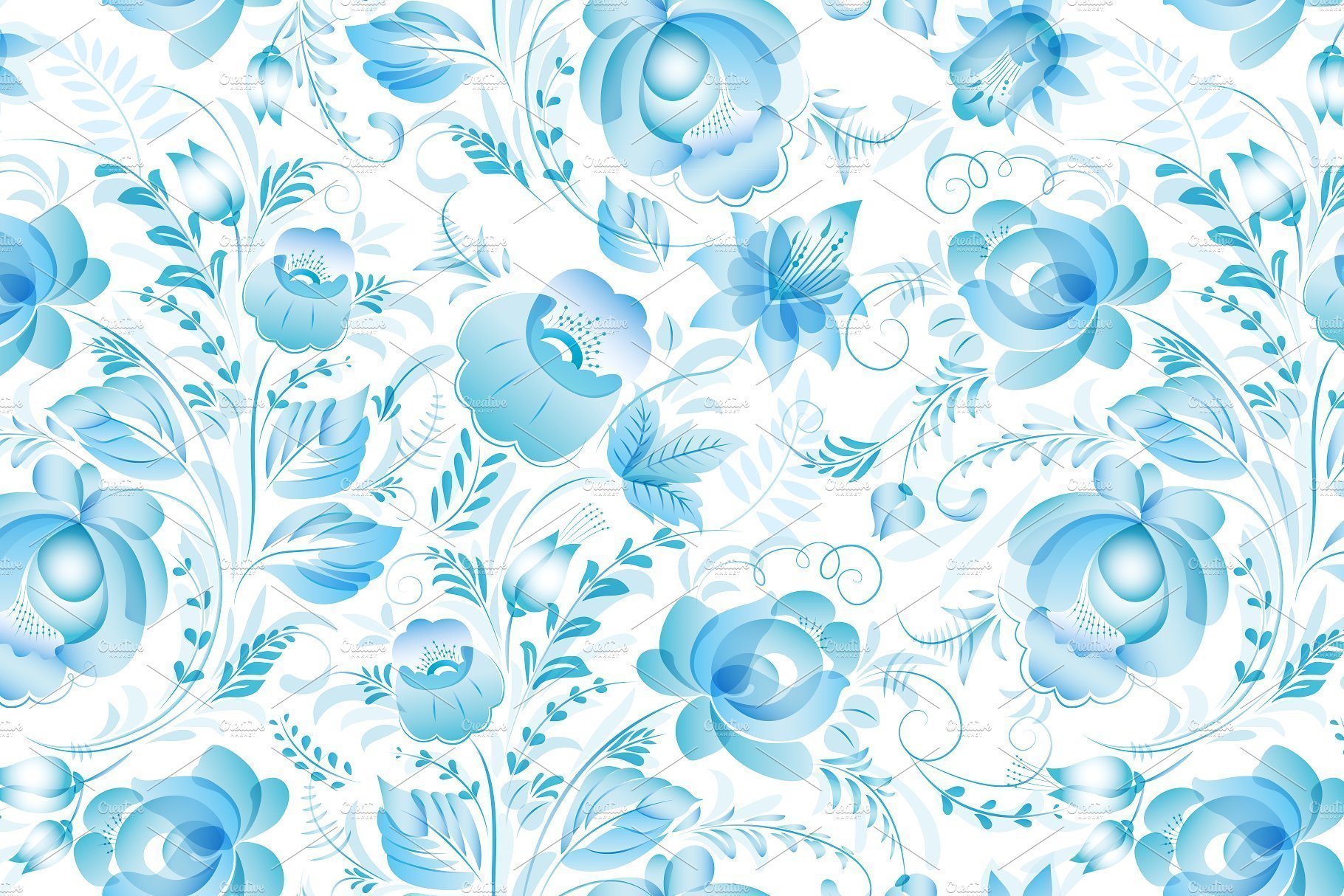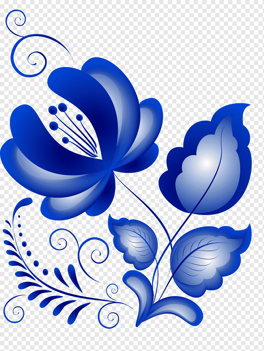 Гжельская роспись на прозрачном фоне