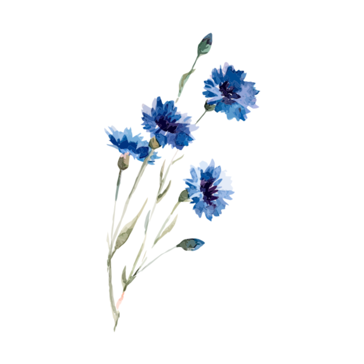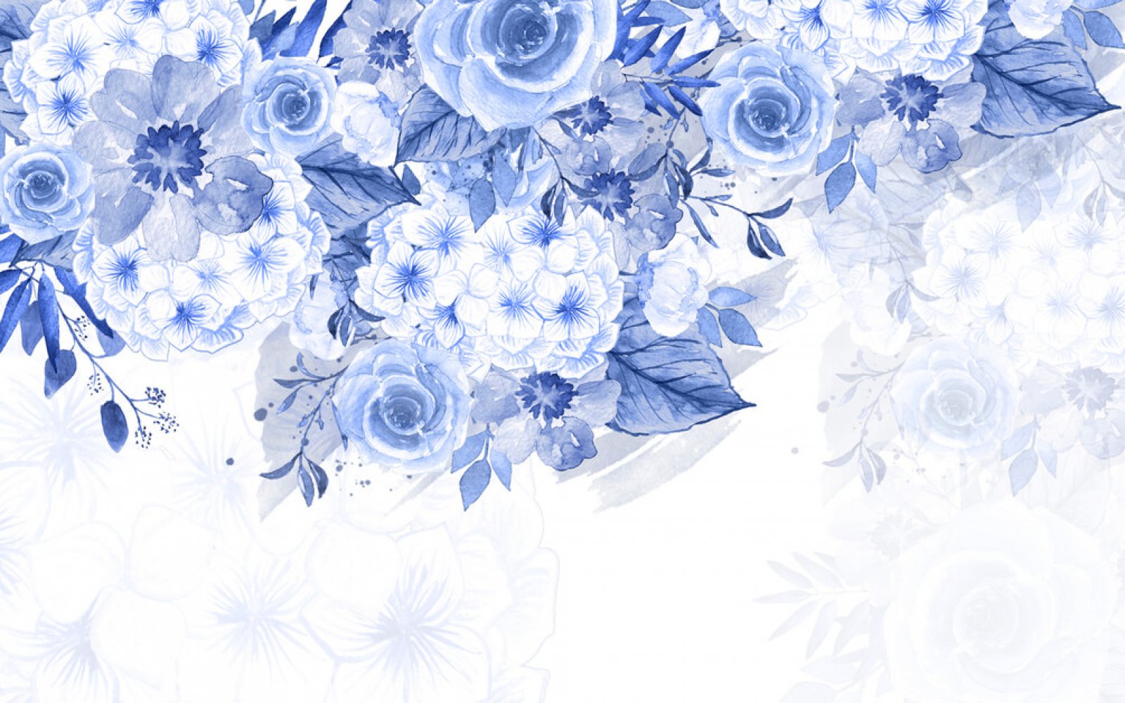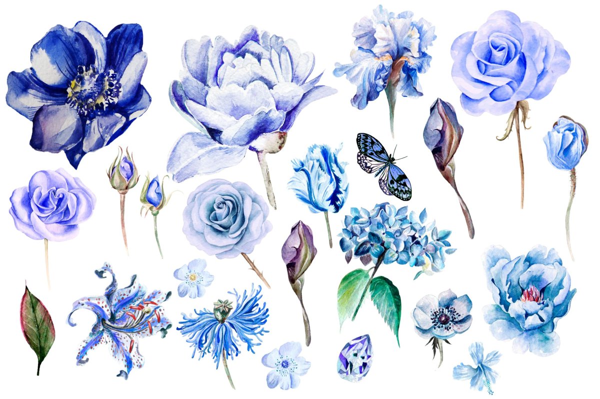 Голубые Акварельные цветы