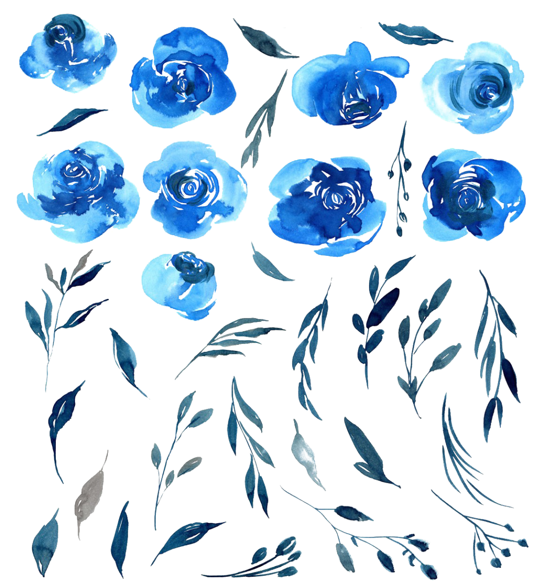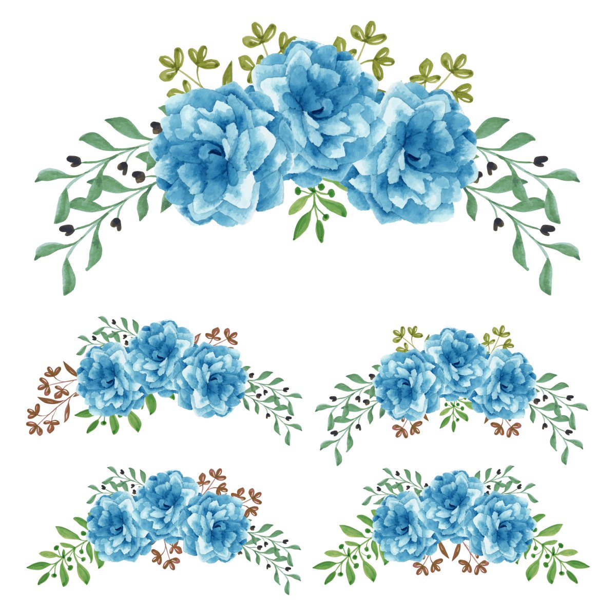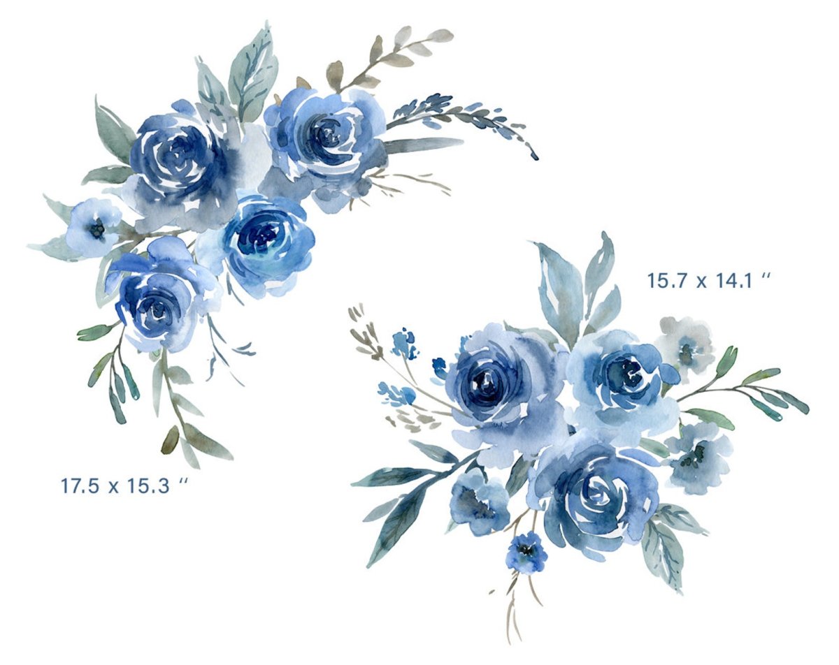 Голубые Акварельные цветы