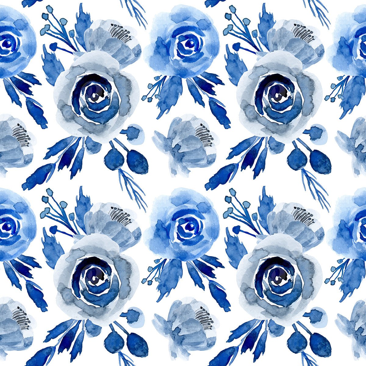 Синие паттерны акварель цветы