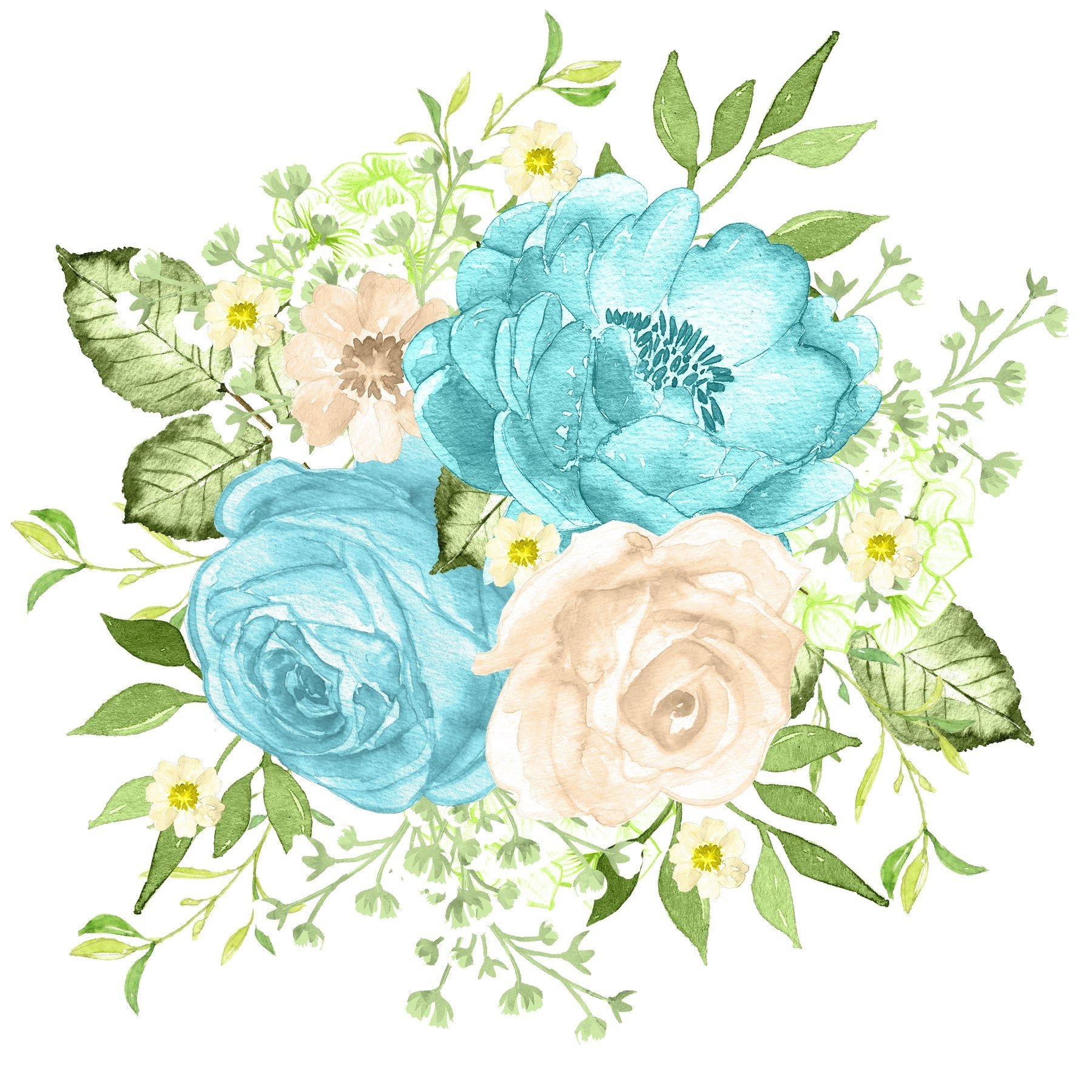 Бирюзовые Акварельные цветы