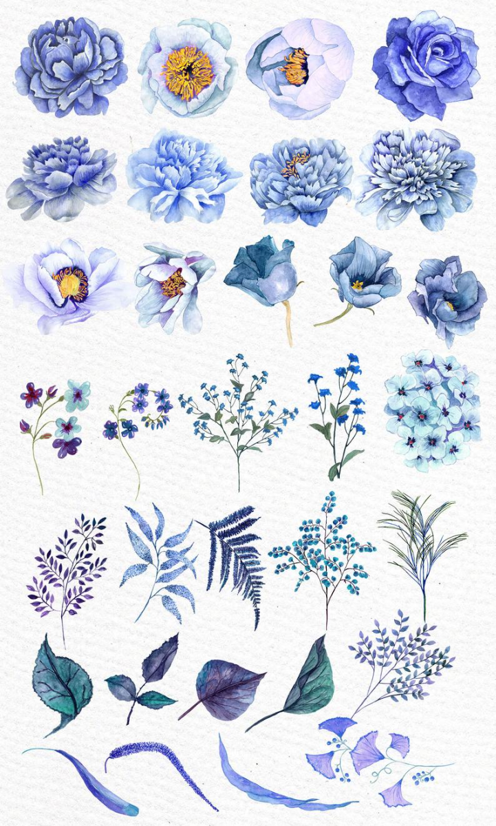 Синие Акварельные цветы
