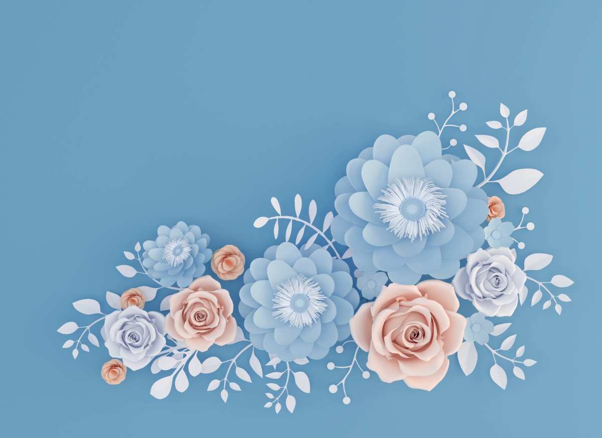 Декоративные цветы на голубом фоне