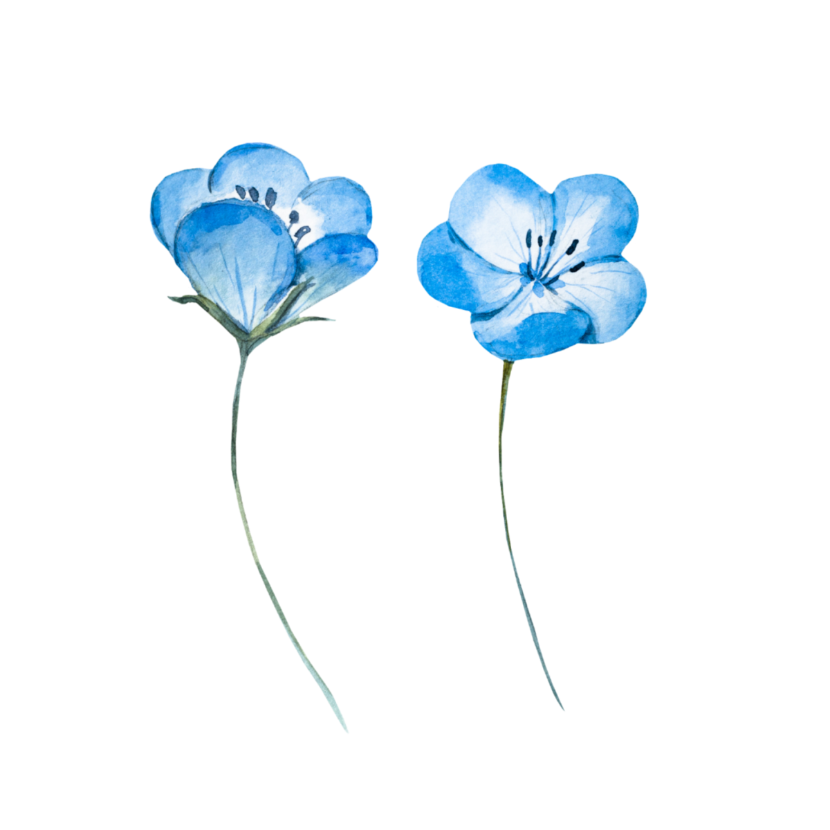 Небольшие цветы голубые акварель на белом фоне