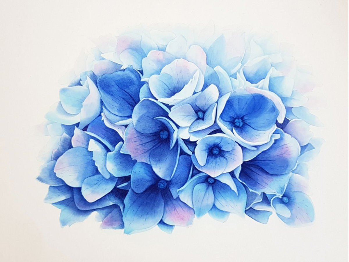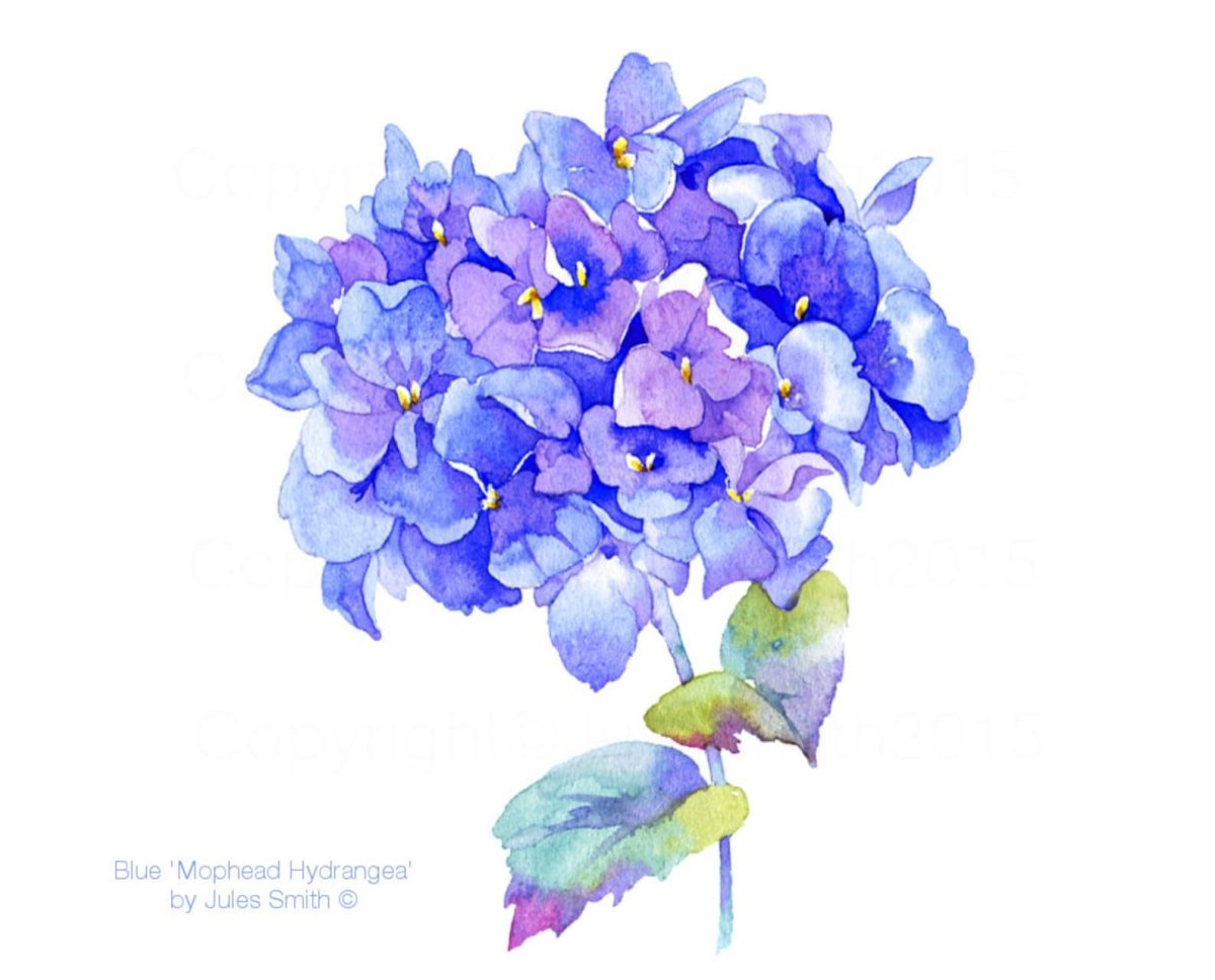 Синяя гортензия акварель