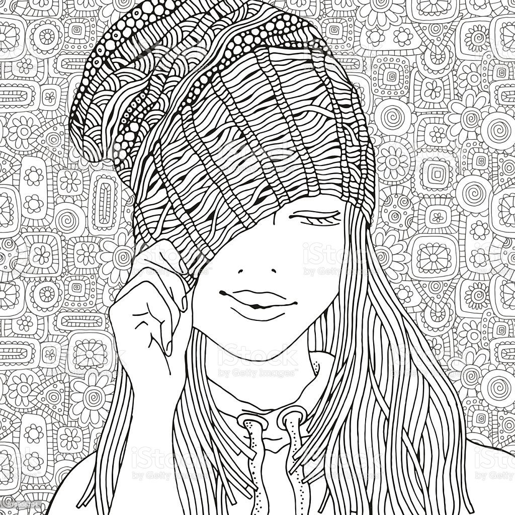 Раскраска девушка в шапке
