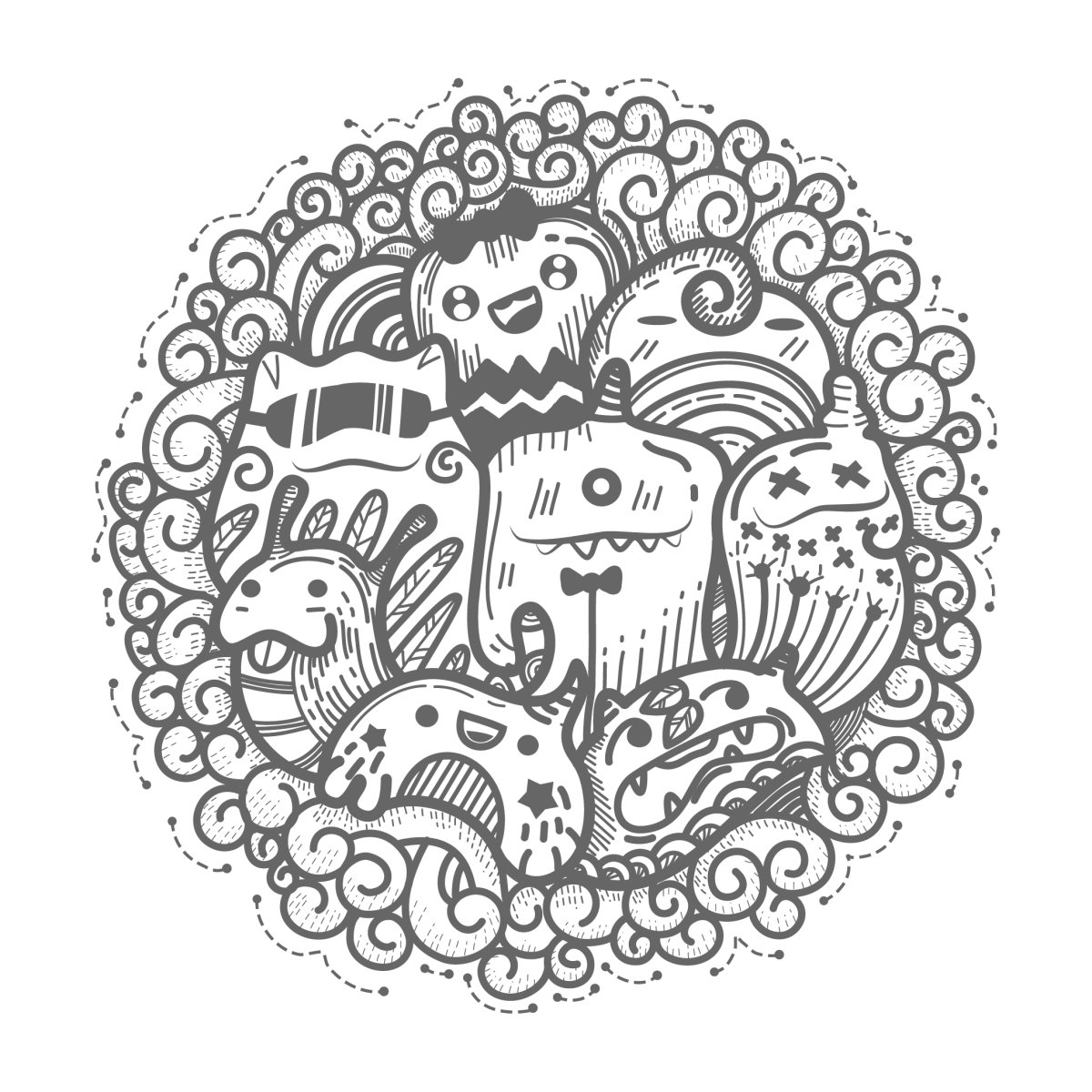 Раскраска дудлинг монстрики