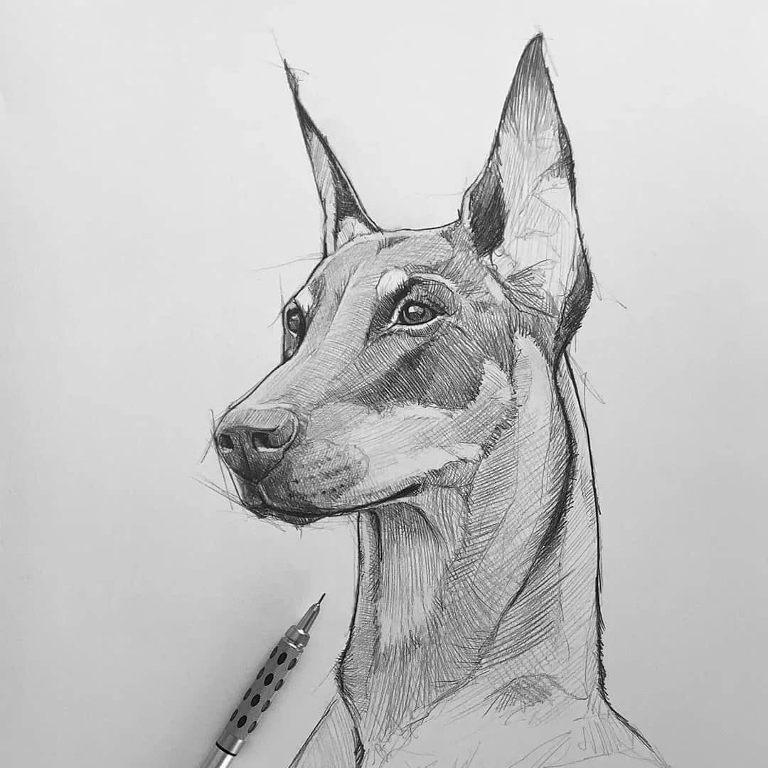 Доберман рисунок карандашом для срисовки