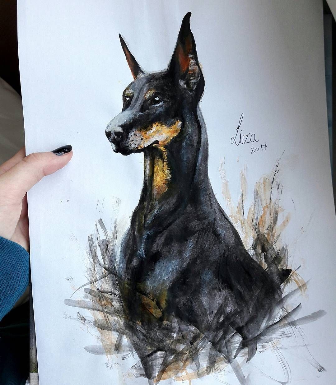 Доберман пинчер акварелью