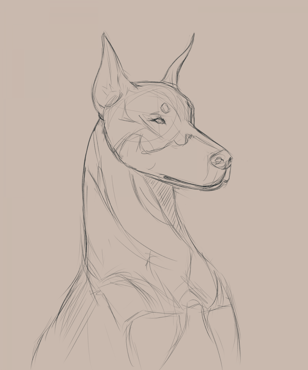 Скетч Доберман в анфас