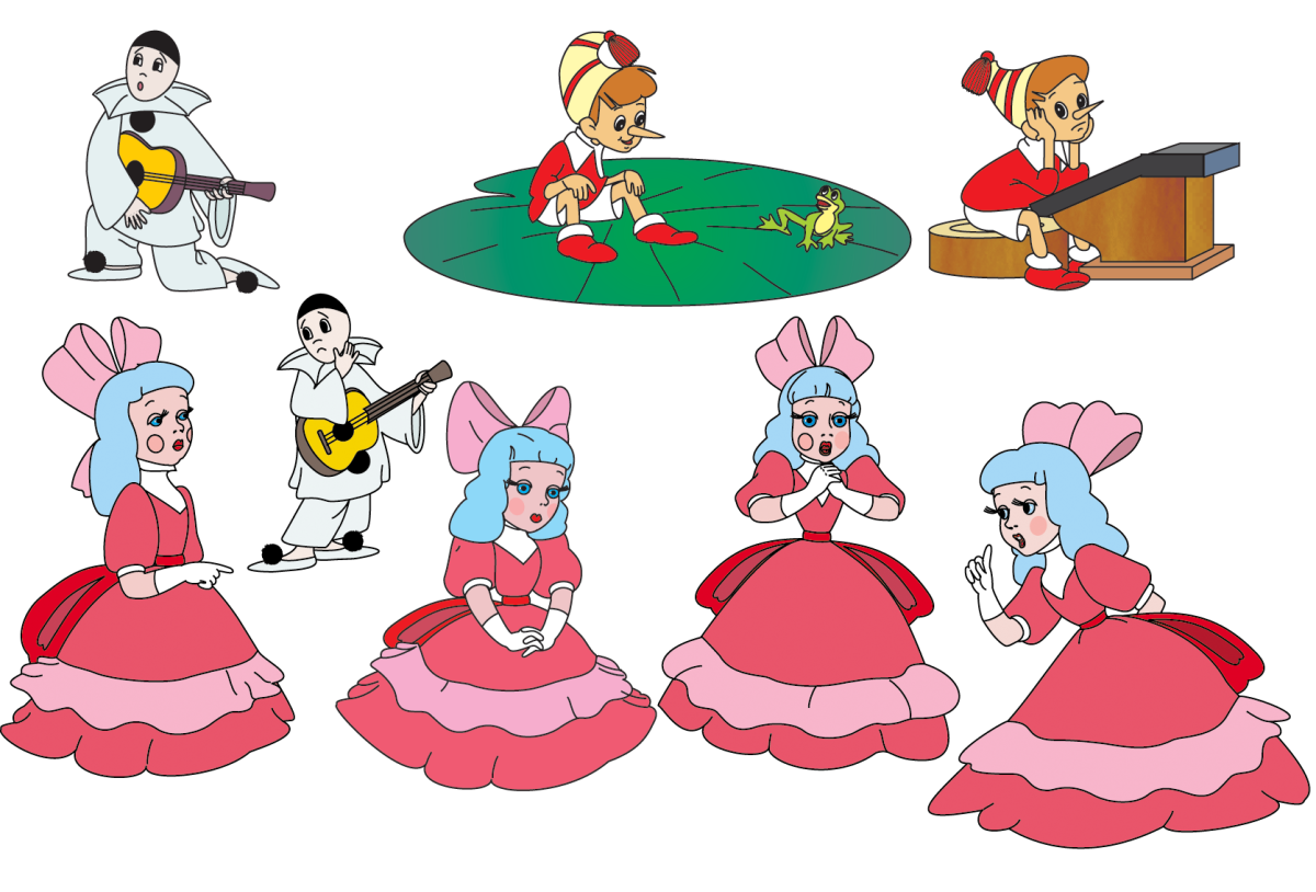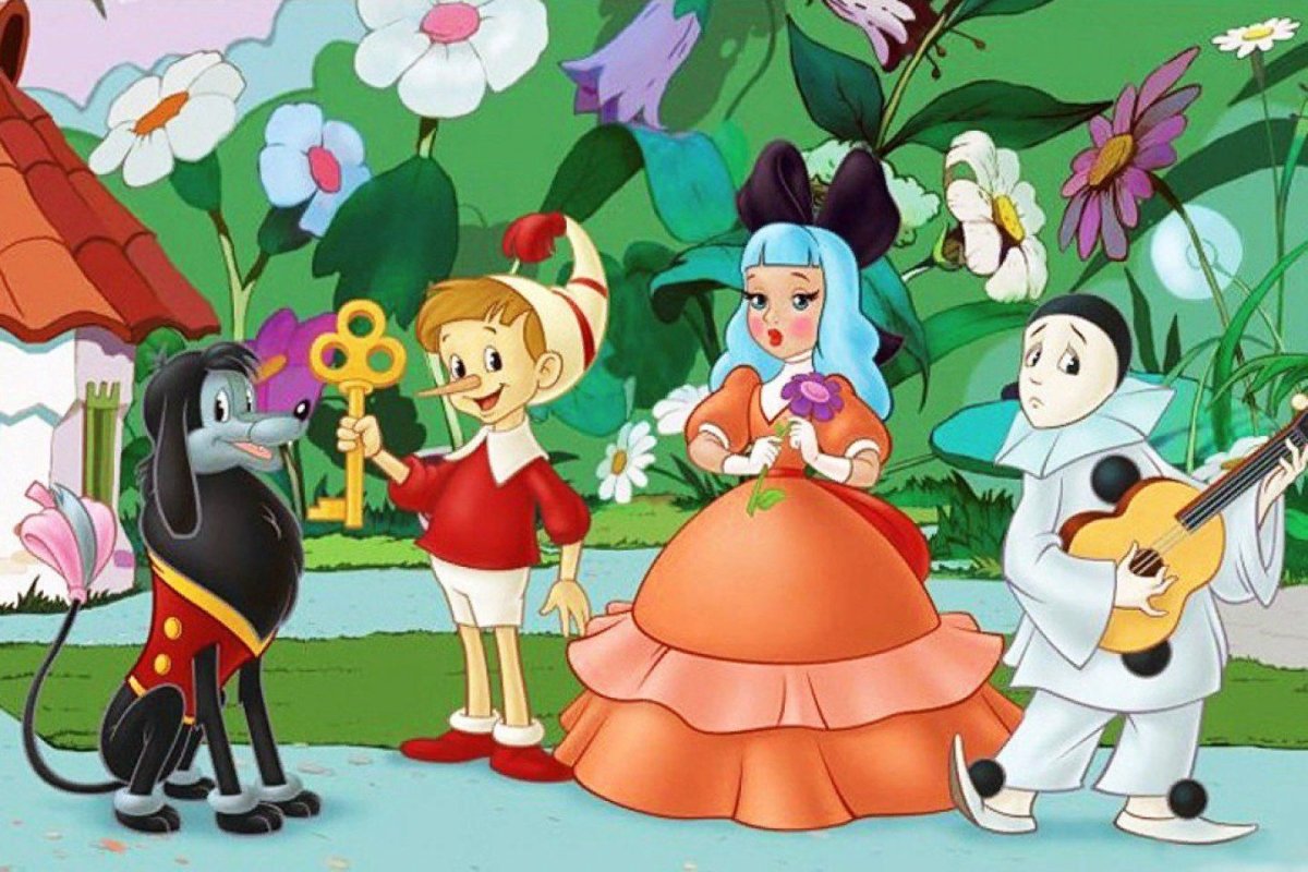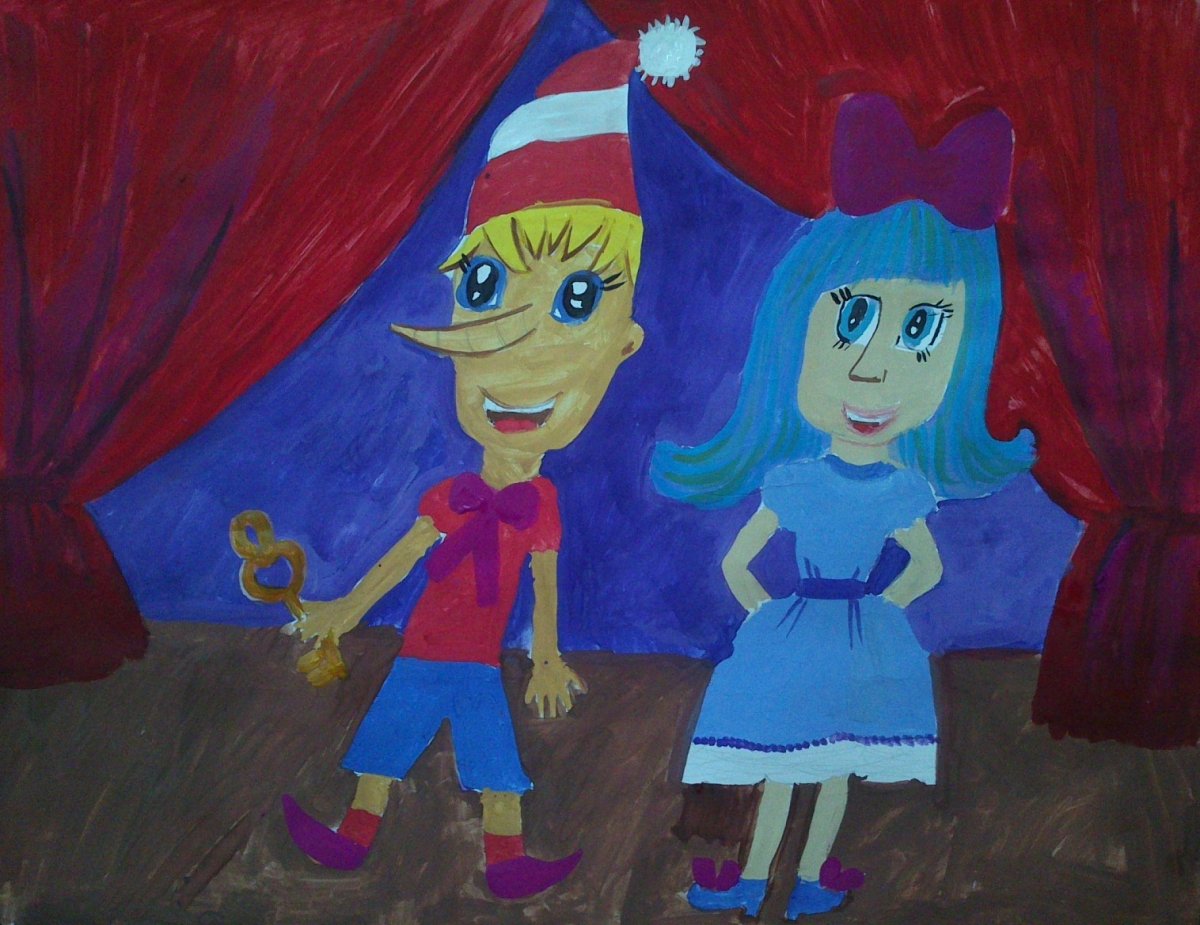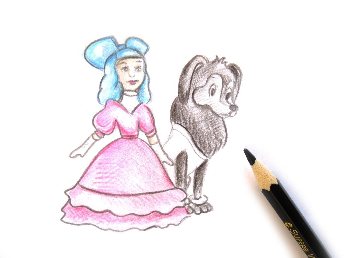 Мальвина и Артемон иллюстрация с цветными карандашами