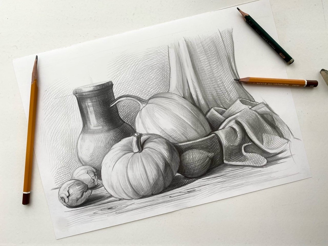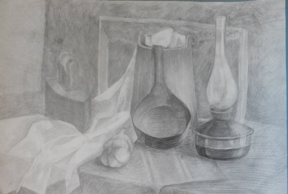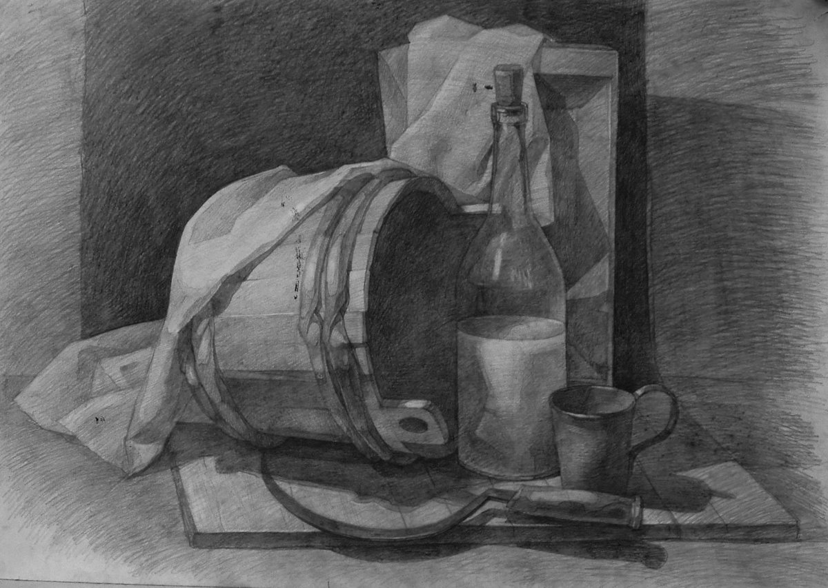 Сложный натюрморт карандашом