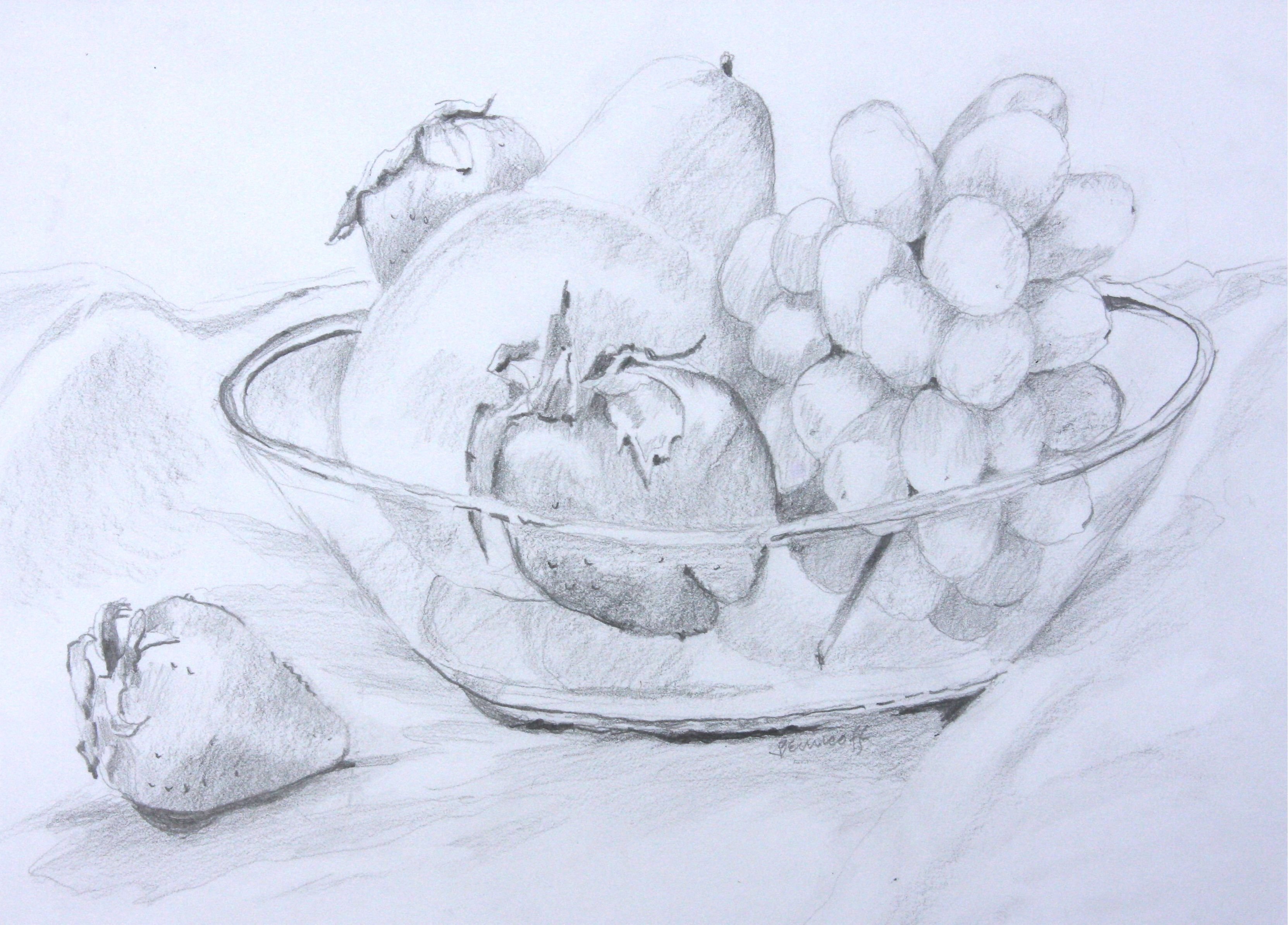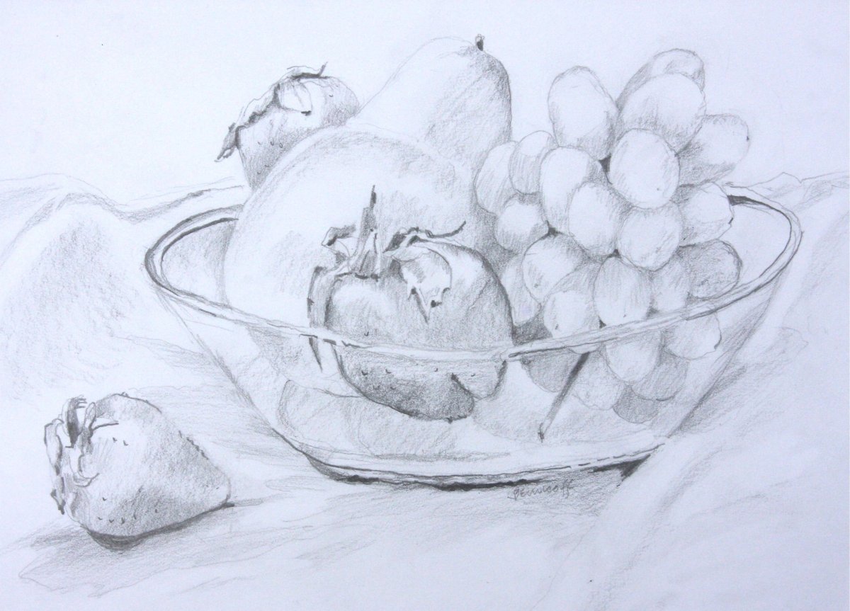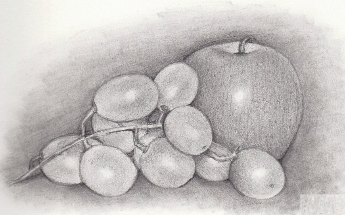 Рисунок карандашом натюрморт фрукты