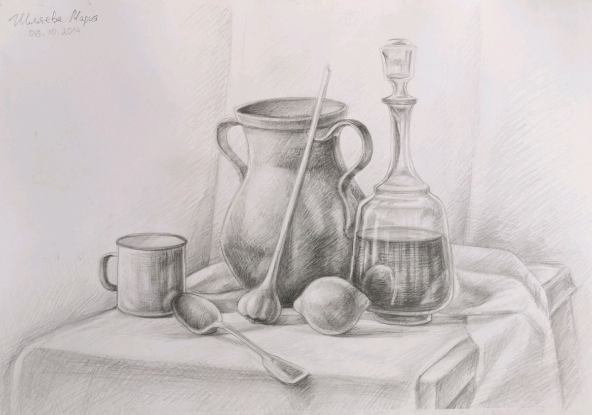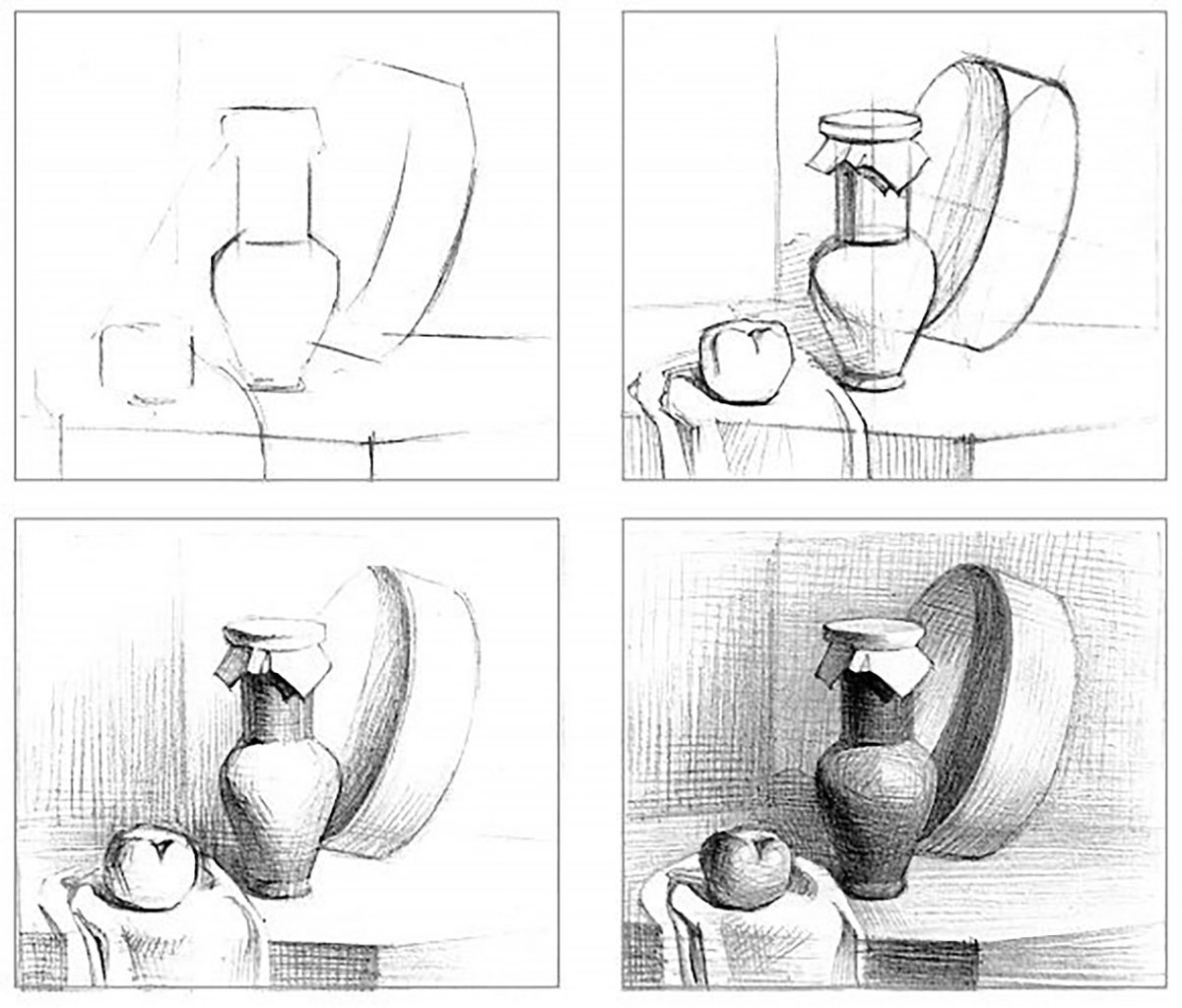 Этапы рисования натюрморта карандашом