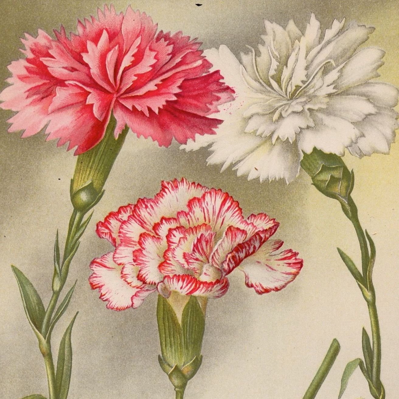Гвоздика Садовая Шабо Ботаническая иллюстрация