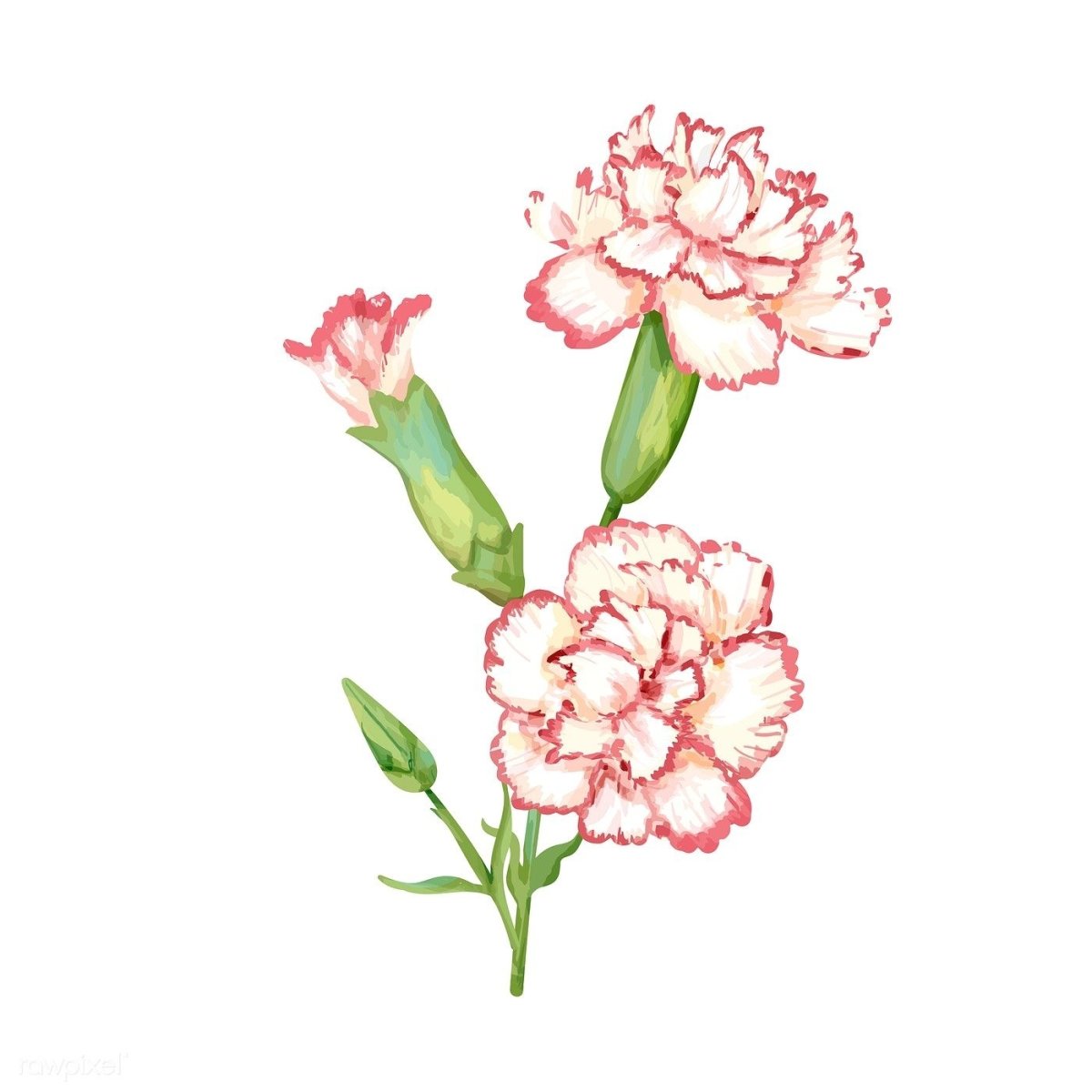 Гвоздика Шабо бело-розовые акварель