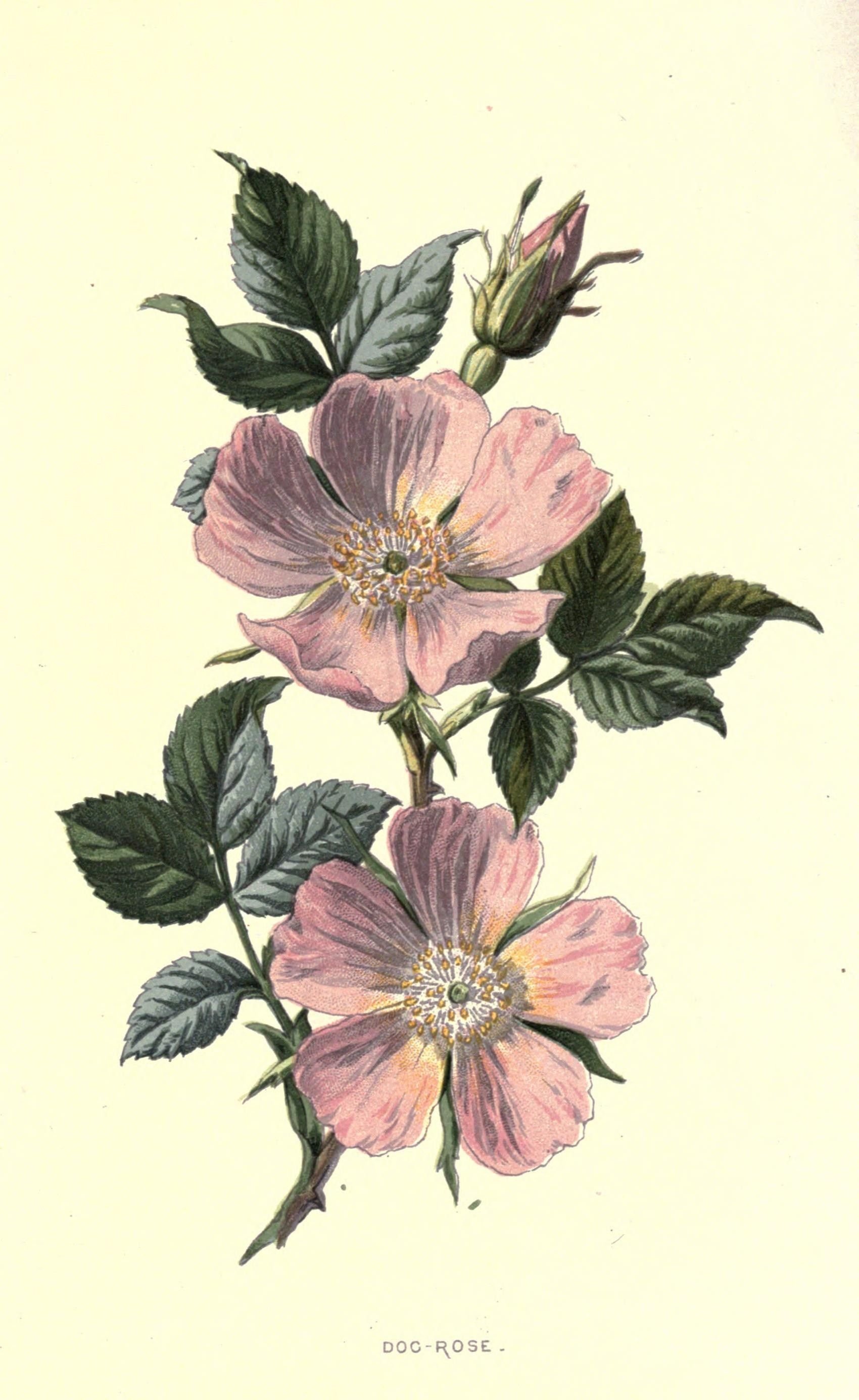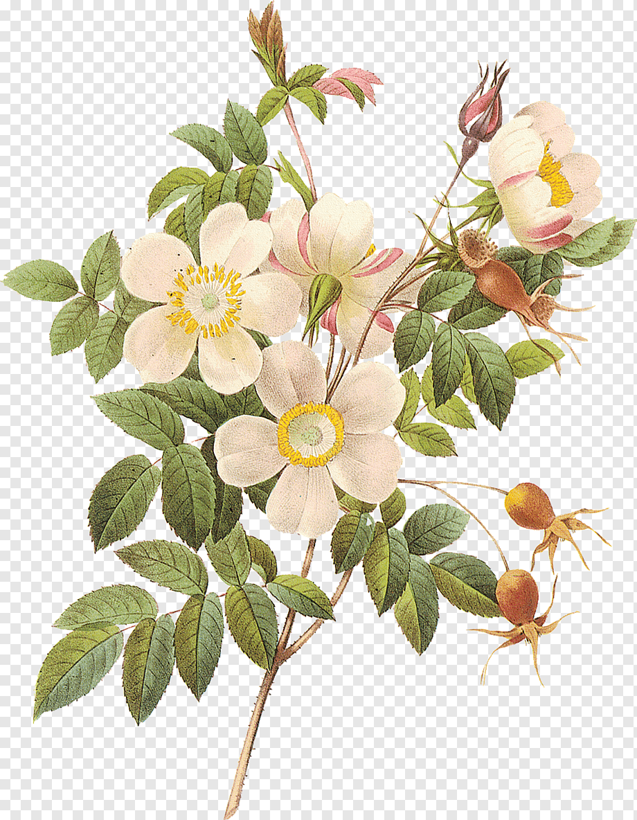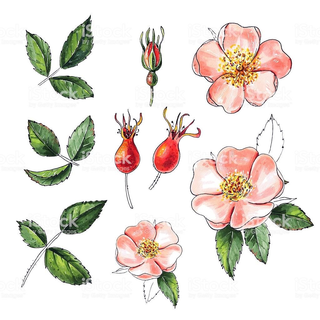 Цветы шиповника Ботаническая иллюстрация