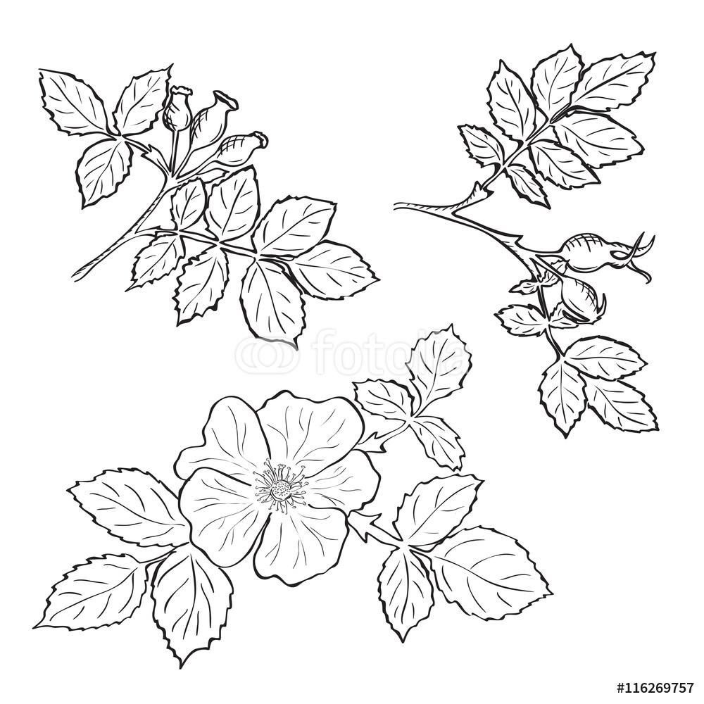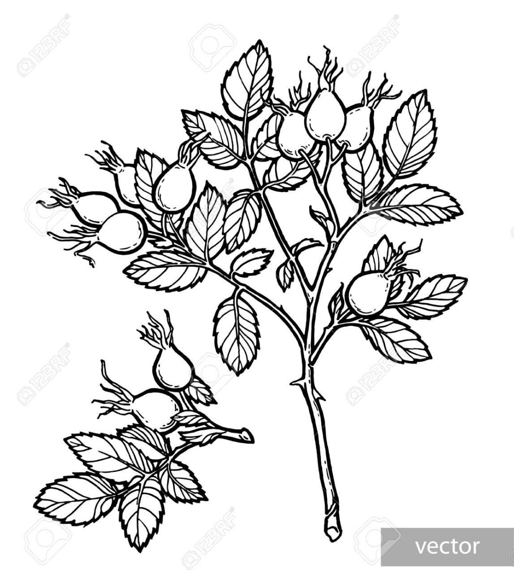 Шиповник контурный рисунок