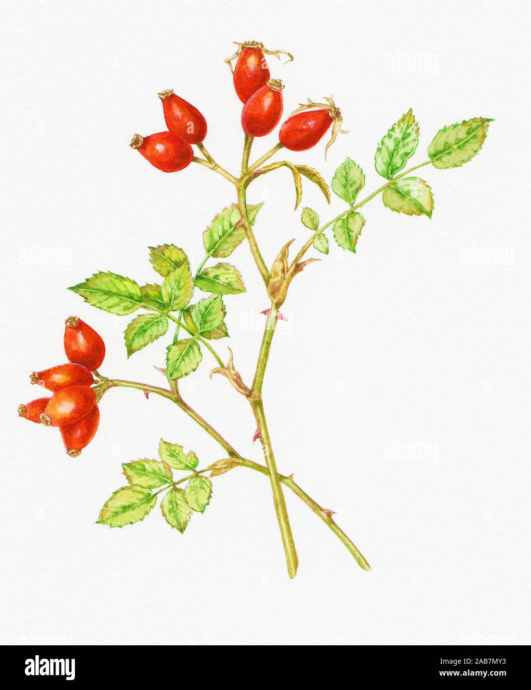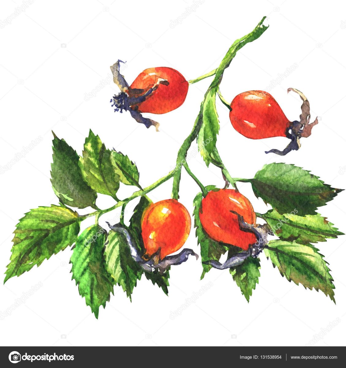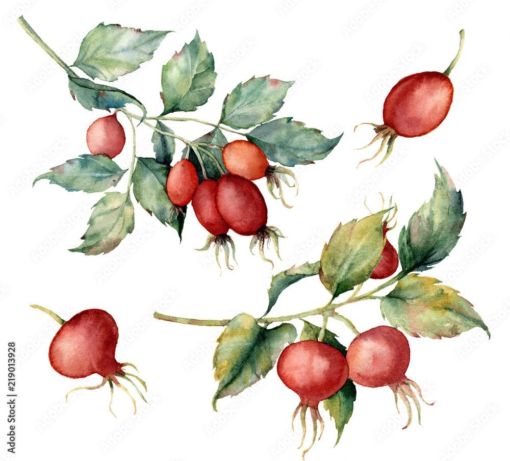 Ягоды шиповника акварель