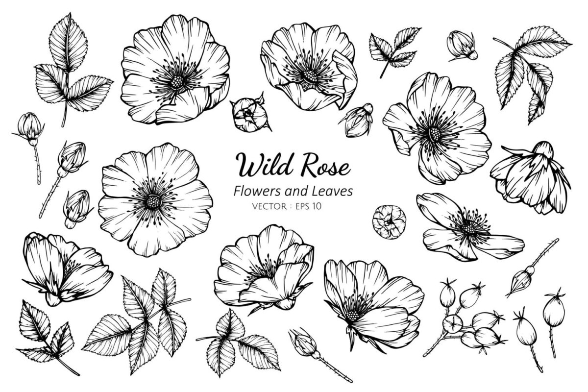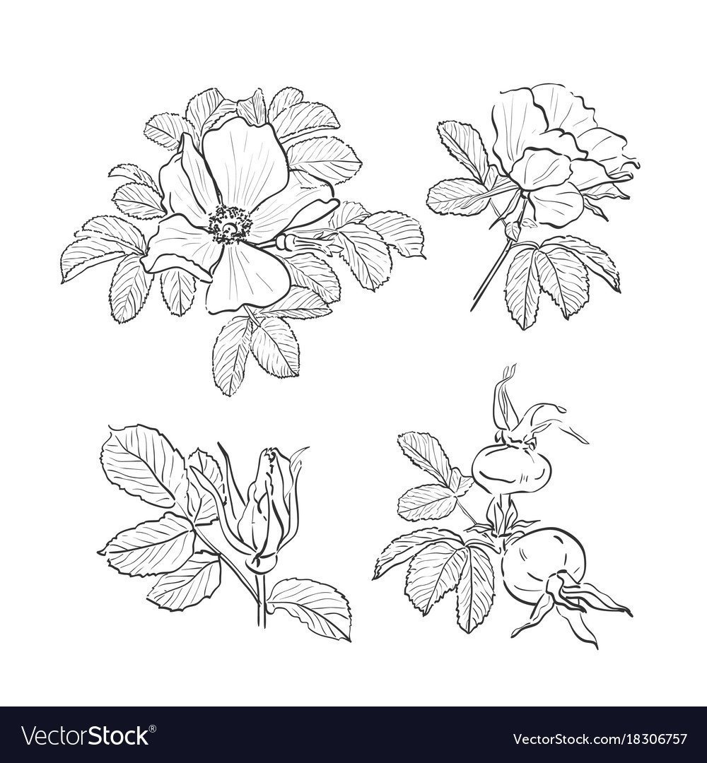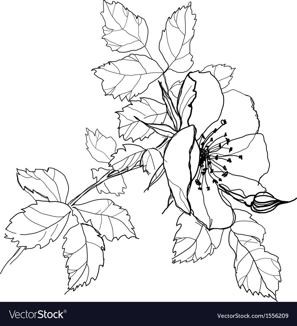 Шиповник цветы вектор чб