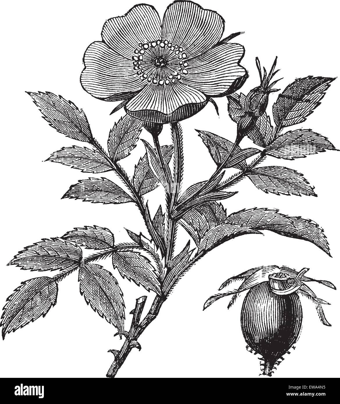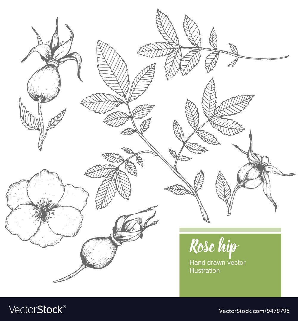 Шиповник Ботанический рисунок