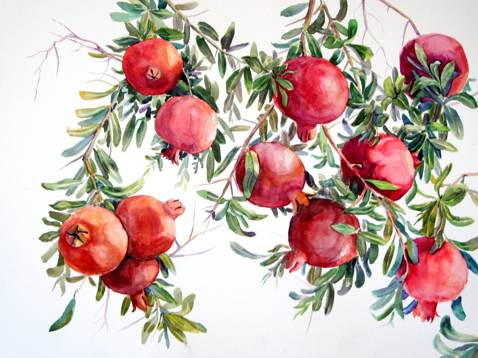 Ботаническая живопись акварелью гранат