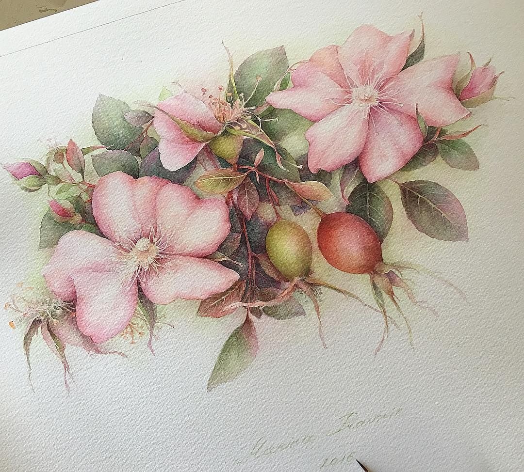 Шиповник акварель