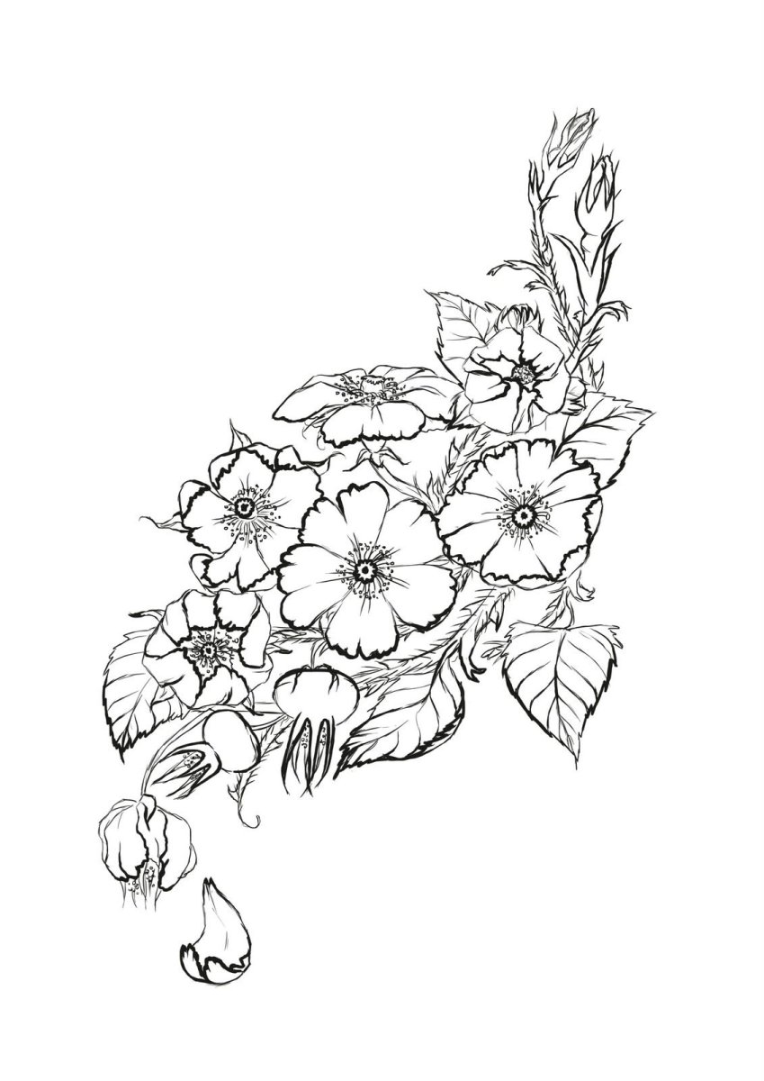 Эскиз тату цветы шиповника